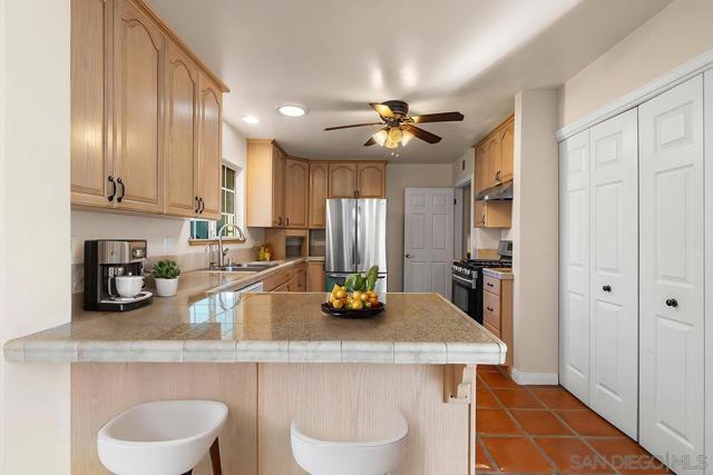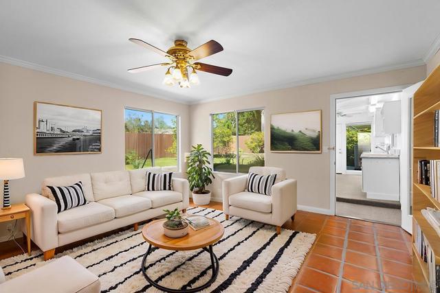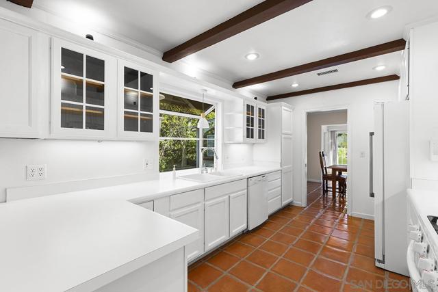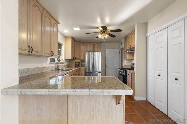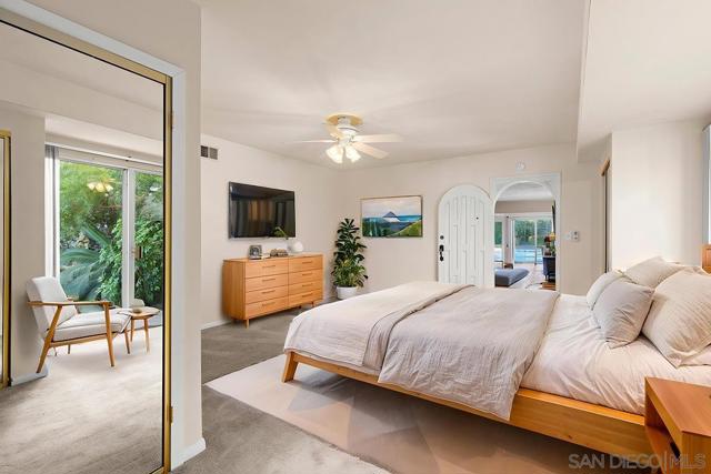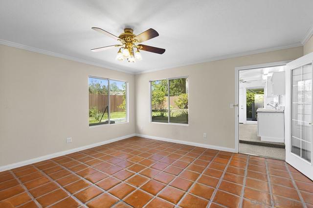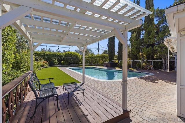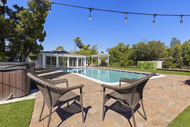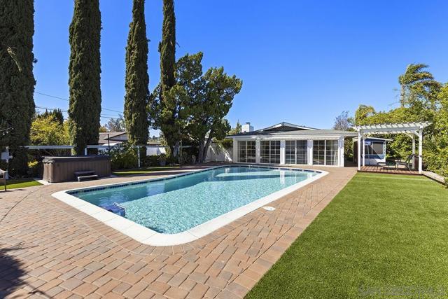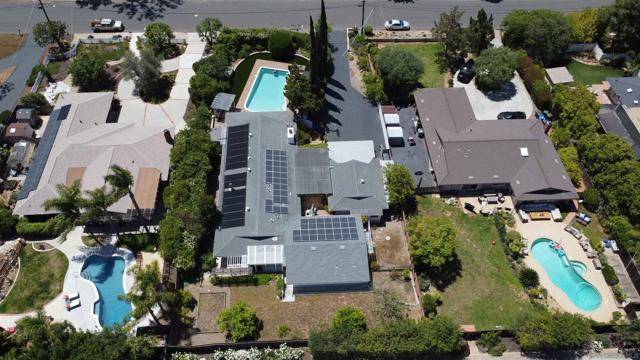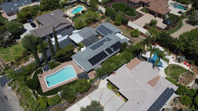 Tremendous value in North Poway - stunning home located on close to half an acre in the heart of highly sought after Green Valley! Fully owned 12.47 KW solar with two full house backup batteries. New owner is grandfathered in to SDGE NEM 2.0. With over $300K in upgrades and nearly 900 feet of extra living space for a total of 3,600 square feet, this ranch-style home is perfect for extended families, and features five bedrooms and three full bathrooms. Authentic Saltillo tile floors and a spacious enclosed sunroom offer views of the private pool area. The inviting patio with new pavers and a retractable awning leads to a large pool that has been completely renovated; the new pool equipment, huge amount of pool solar and gas heater, Fastlane swim system, and large hot tub make it a water lover’s paradise. This single level home is built to enjoy the beautiful Poway weather, with most rooms having their own exterior door to the outside. There is a complete second kitchen in the newer addition at the back, perfect for large families. A private separate structure houses a large, comfortable office, which could easily be converted into a lucrative ADU by adding a bathroom in the adjoining sunroom. There are very productive orange, tangerine and lemon trees in the back yard, and recently widened driveway provides ample room for parking. A new HVAC system and a new main electrical panel complete this very unique and desirable home!