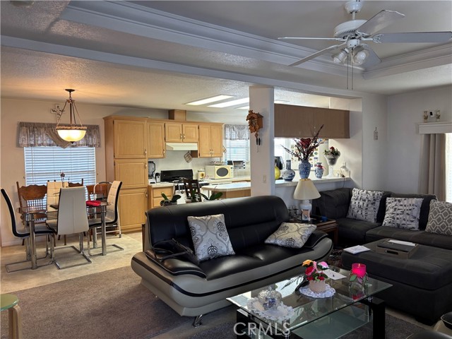 Beautifully Maintained Home – Only Two Owners! Step into this charming, well-cared-for home that offers a welcoming atmosphere. The open floor plan features a spacious living room with a cozy fireplace, abundant natural light from large windows, and a stylish raised coffered ceiling that adds style. The expansive kitchen is perfect for both everyday living and entertaining, offering a generous island, built-in corner hutch, walk-in pantry, and a sunny bay window. Ample cabinetry ensures plenty of storage for all your culinary essentials, making it the ideal space to create memorable meals with family and friends. A convenient laundry room with additional closet space adds to the home’s functionality. All bedrooms are comfortably sized, with the primary suite boasting dual sinks, a relaxing garden tub, and a separate walk-in shower. Outside, enjoy your morning coffee on the covered porch with awnings, or take advantage of the extra-large carport—providing covered parking for up to three vehicles. A newer storage shed offers even more room for your belongings. Nestled in a quiet location toward the back of the park, this home offers peace, privacy, and a welcoming community atmosphere. A must-see—you’ll be glad you came!