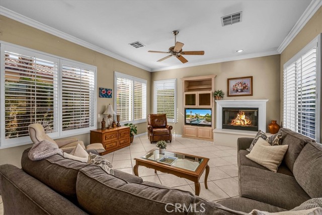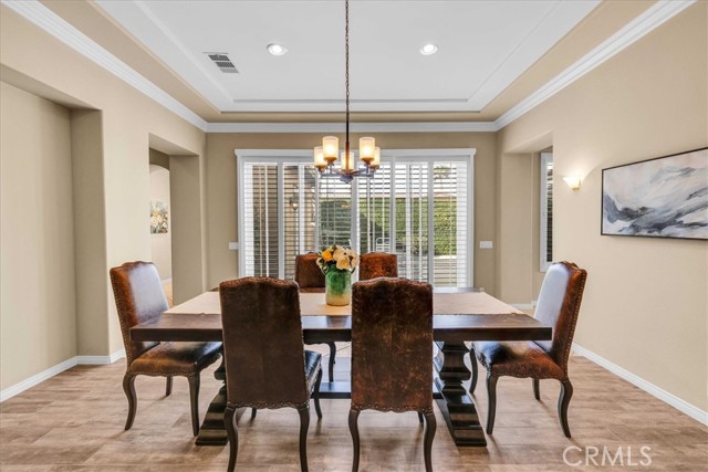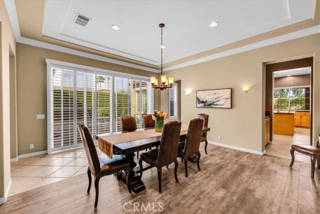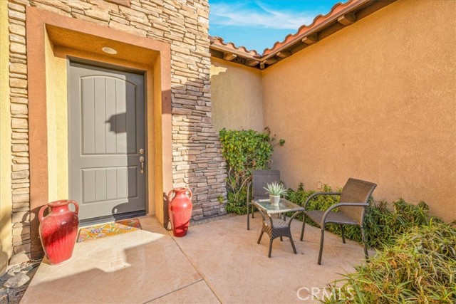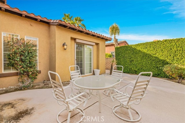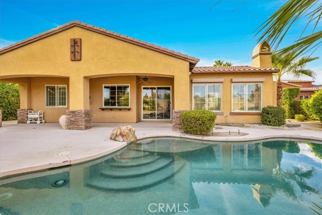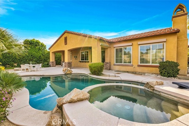 Welcome to this stunning Tuscan-inspired retreat in the exclusive gated lake community of Santo Tomas. This beautifully maintained home offers the perfectblend of luxury and serenity, boasting 3 spacious bedrooms, 2.5 baths and 2,384 square feet of living space on a generous 10,019 square foot lot. As you enter, you'll be greeted by the elegant formal dining room, perfect for hosting dinner parties and special occasions. There is a nice separation of bedrooms with the primary bedroom being in the front of the home with a walk-in closet, separate tub, showerand dual sinks. The primary bedroom and formal dining room both open up to a private courtyard. The other 2 bedrooms are good size sharing a full bath. Gorgeous tile floors and plantation shutters throughout. The heart of the home features a spacious eat-in kitchen, equipped with granite countertops, breakfast island with sink and a butlers pantry. The kitchen flows seamlessly into the living room where you will find a built-in entertainment center and cozy fireplace.Sliding glass doors lead out to the stunning rear yard for entertaining, complete with a refreshing pebble tec saltwater pool/spa and firepit. The HOA includes a social/tennis memebership to the adjacent Mission Hills Country Club.