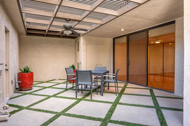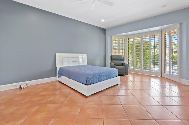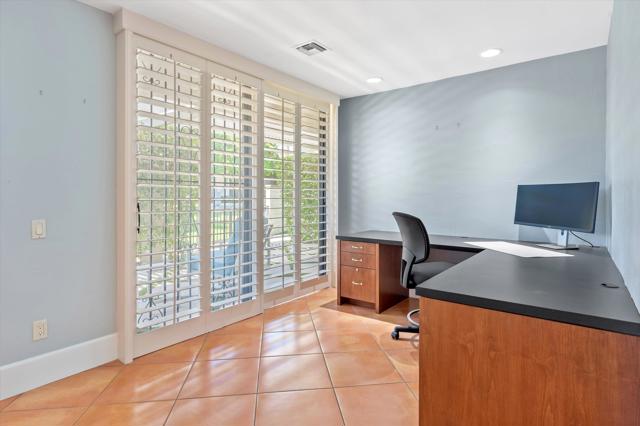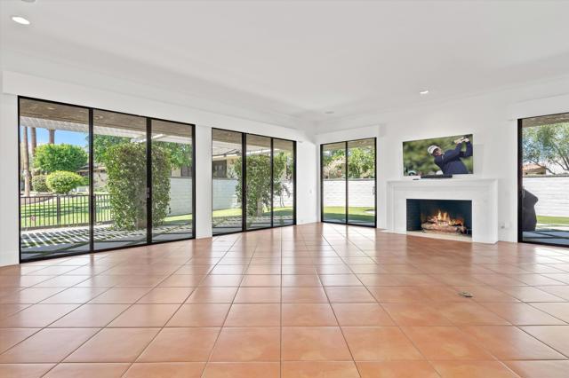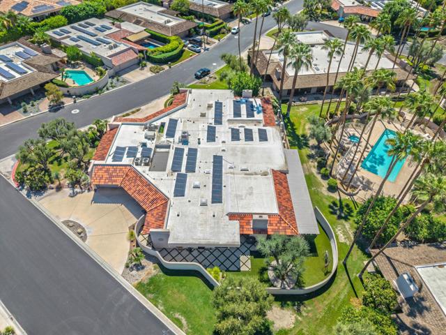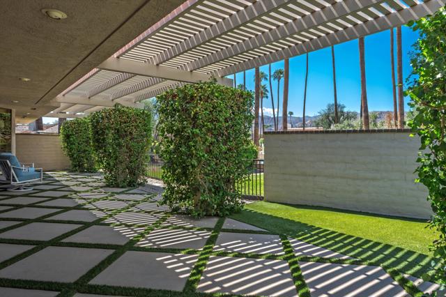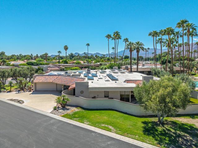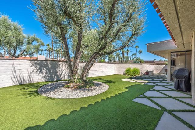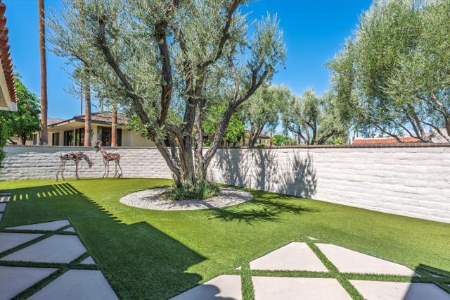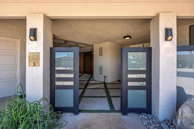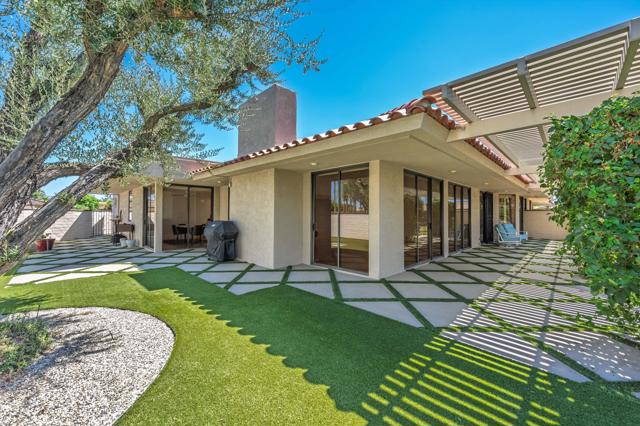 Everything you've been looking for in a serene and private desert retreat. This late Phase 8 - Shaugnessey floor plan with private circular driveway is an incredible value. You'll find timeless design in this light bathed property, ideal for those looking for a lock and leave desert home. Designer ceramic tile flooring throughout, enlarged coffered and illuminated entry with smooth plaster and recessed lighting. Highly upgraded kitchen including top of the line stainless appliances, shaker cabinets and honed granite countertops. A stunning master bathroom with oversized walk in shower. There are exceptional finishing touches throughout the entire property. Expansive primary bedroom retreat with office nook can also be used as private sitting area. New HVAC units and 30 panels of owned solar! Enjoy the convenience of electronic window shades and a wonderful lounge patio in the rear of the property. Southwest facing living areas have fabulous mountain views as a backdrop across a lush greenbelt creating a tranquil home environment. Only a few steps from a large recessed community salt water lap pool and spa! The unique outside SW entertaining area includes an extended side yard that has been walled off for additional privacy and a larger outdoor space, thoughtfully designed with synthetic turf, poured in place pavers and zero maintenance Alumawood Trellis. World class Golf, tennis, pickleball, fitness, dining and exclusive events are all available at The Springs Country club. With the $16 million dollar Desmond Muirhead-designed golf course renovation due for completion in November of 2025 - it's time to come see The Springs- where Legacy meets the future!