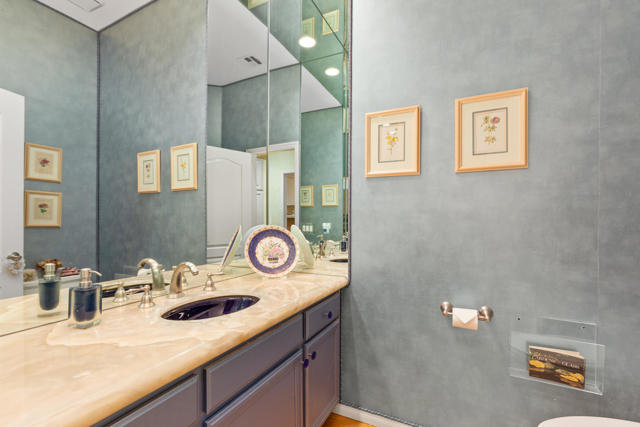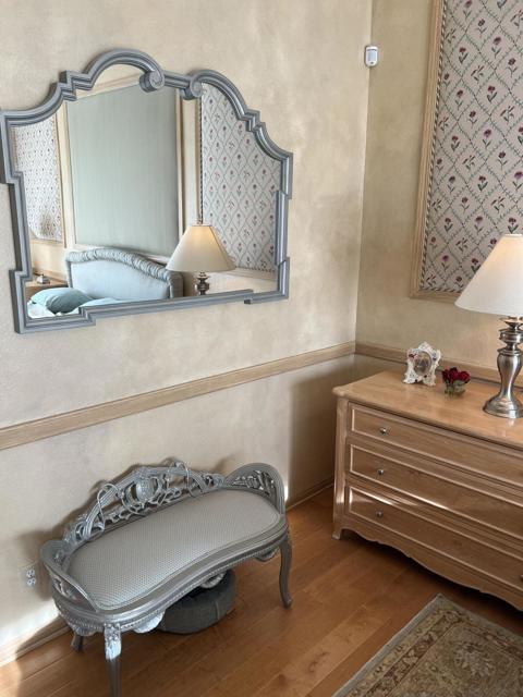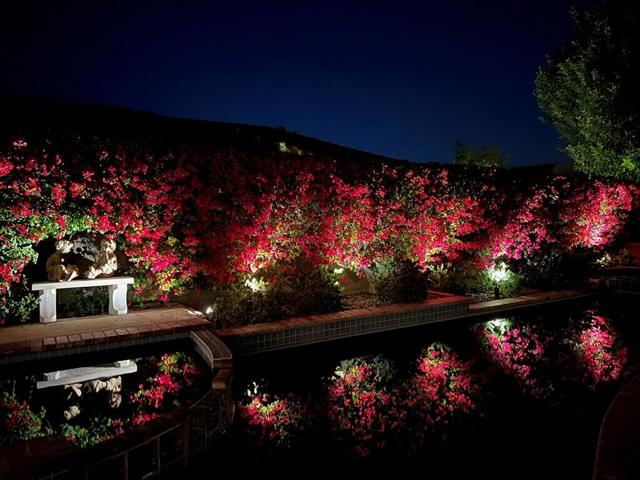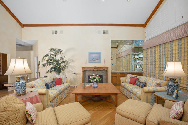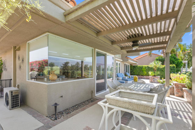 Experience the ultimate in luxury desert living with this stunning turnkey furnished custom Country French home, perfectly positioned to capture unobstructed, breathtaking triple fairway Mt San Jacinto mountain views. This freestanding 'Evergreen' plan offers over $350,000 in custom upgrades and exudes elegance and comfort throughout. Rich hardwood floors, crown molding, plantation shutters, and built-in surround sound (including outdoor speakers) create a sophisticated yet welcoming atmosphere. The spacious living room features a cathedral ceiling, a custom wood mantel over a granite-accented fireplace, and a stylish built-in wet bar, making it ideal for entertaining. The gourmet kitchen showcases premium KitchenAid appliances, including a newly installed $10,000 built-in refrigerator, all complemented by expansive golf course mountain views. The primary suite is a serene retreat with a cozy fireplace, motorized curtains, and custom drapery, while the spa-inspired primary bathroom includes granite surfaces, a walk-in shower, and a real Jacuzzi tub. Additional bedrooms are thoughtfully designed for comfort and functionality, including a bedroom/den with a couch that folds out into a bed, a spacious ensuite guest bedroom with pool views, and an extended office/bedroom with built-in desks, cabinetry a walk-in closet & couch /bed. Step outside to your private courtyard oasis featuring a heated saltwater pool/spa,& waterfall surrounded by expensive wicker patio furniture and a built-in brick barbecue. This home also includes a carpeted two-car garage with a golf cart bay, tons of built-in storage, and an upgraded paver driveway. Best of all, this home sits on fee simple land--no land lease--offering true ownership in one of the desert's most sought-after communities. Whether you're seeking a full-time residence or a luxurious seasonal escape, this home offers unparalleled style, comfort, and views