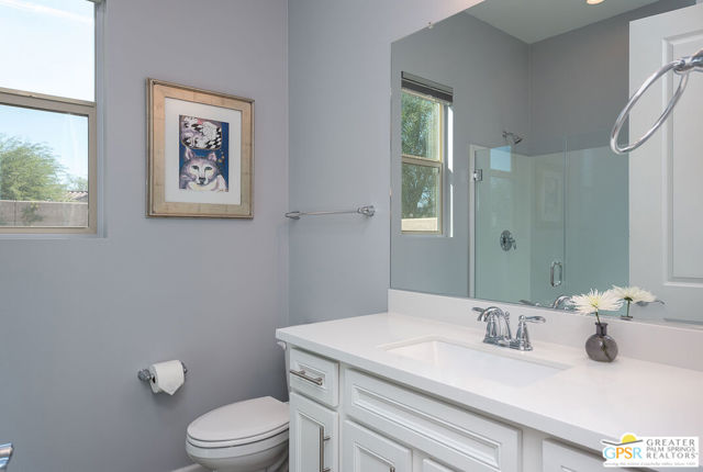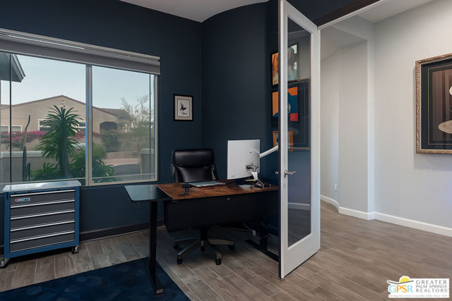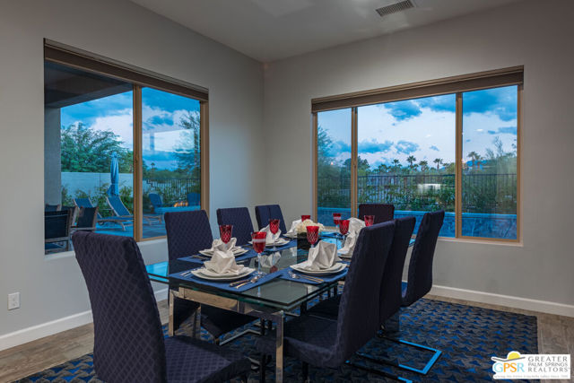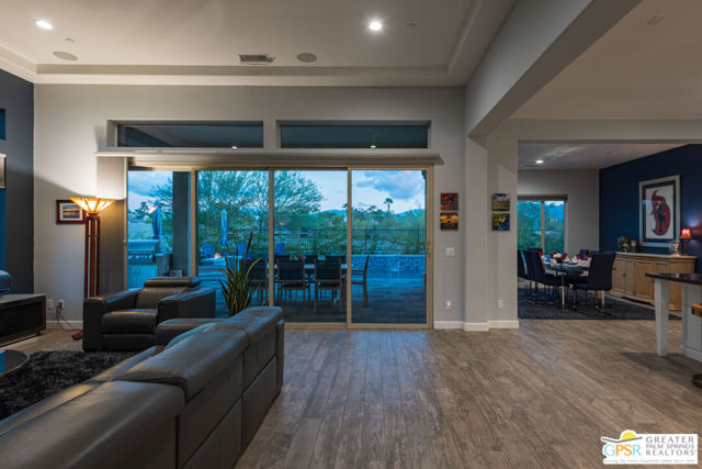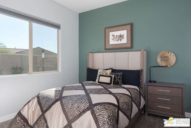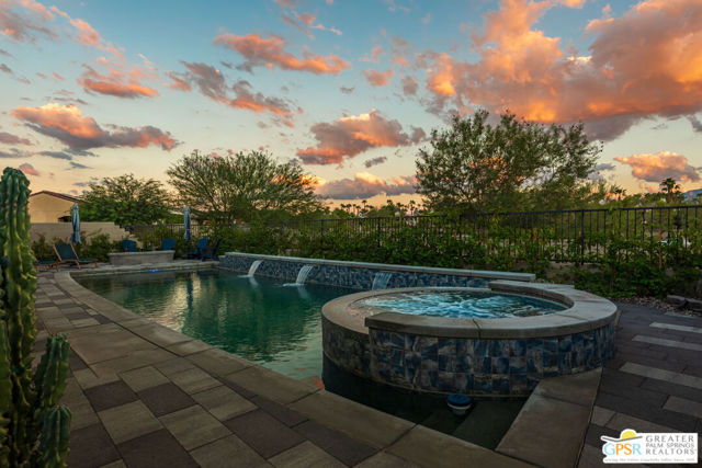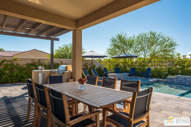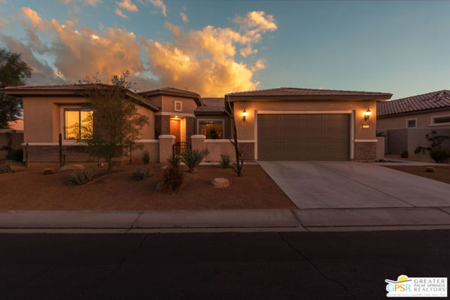 Discover luxury desert living at 47 Cabernet located in the 55+ community of Del Webb Rancho Mirage. Offering 2,329 square feet of thoughtfully designed interior space, this 3 bedroom, 2 bathroom residence pairs everyday comfort with refinement. A formal entry welcomes you into vaulted ceilings, an open concept layout and a wall of glass leading to the outdoor covered patio. The great room seamlessly flows into the formal dining area and gourmet kitchen which features granite countertops, professional-grade appliances and custom cabinetry for effortless entertaining. An additional bonus room offers space for work or relaxation. The primary suite is a serene retreat of its own with dual vanities, custom glass-tile walk-in shower and soaking tub. With direct pool access, step outside to enjoy indoor/outdoor living with mountain views, a sparking pool with integrated spa, fire feature and an outdoor kitchen pavilion perfect for enjoying vibrant sunsets or al fresco dining. Enhanced with owned solar, a 2 car garage and an owned water-softener, 47 Cabernet brings efficiency to everyday living. Residents of Del Webb Rancho Mirage enjoy the Outlook Clubhouse, resort-style pools, a state-of-the-art fitness center and courts for pickle ball, tennis and bocce - all centered around a vibrant social calendar in a beautifully maintained gated community. 47 Cabernet is more than a home - it's the ultimate expression of desert living. Schedule your private showing today.