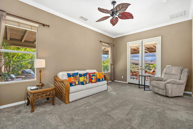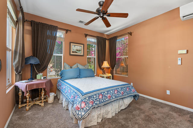 Welcome to 5 Lake Louise Ct -- a captivating desert retreat nestled in the sought-after lakefront community of Mission Shores. This remarkable 4-bedroom, 4-bathroom residence sits on a premier lot offering panoramic views of the surrounding mountains and shimmering lake, creating a truly breathtaking backdrop for everyday living.Step through the private entry courtyard and discover the inviting detached casita, perfect for guests, complete with its own en-suite bath. As you enter the main home, you'll be drawn in by the bright, open-concept layout filled with natural light and a seamless indoor-outdoor flow.The chef's kitchen is the heart of the home, featuring a large granite island, extensive cabinetry, and a spacious walk-in pantry -- ideal for both everyday living and entertaining. Recent upgrades include a fully owned 21-panel solar system and newer HVAC systems, offering energy efficiency and peace of mind.The primary suite is a tranquil sanctuary, where you can unwind while soaking in the lake and mountain views. The en-suite bathroom offers dual vanities, and two walk-in closets.Step outside to your private backyard paradise -- enjoy a dip in the sparkling pool, savor the views from your sun-drenched patio, or escape to the enclosed sunroom equipped with a mini-split system for year-round comfort.Mission Shores is a picturesque gated community known for its lush greenbelts, and scenic lakes. Ideally located near top-tier dining, shopping, and golf -- this is the ultimate desert lifestyle.Don't miss your chance to make this rare lakeside gem your own oasis in the desert.