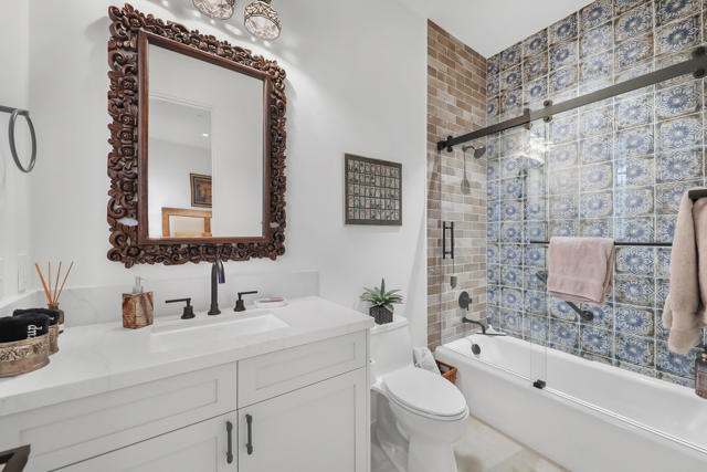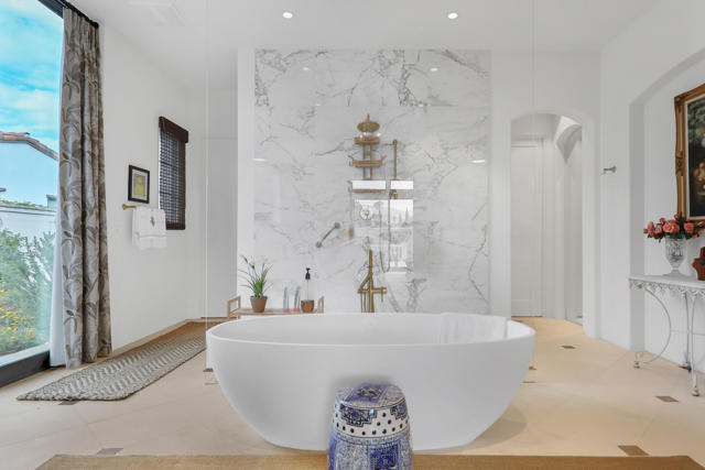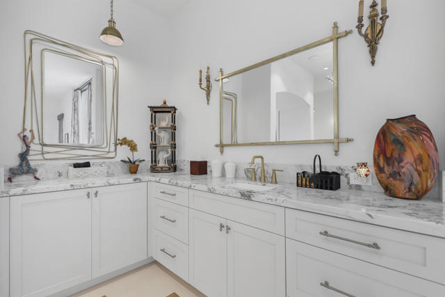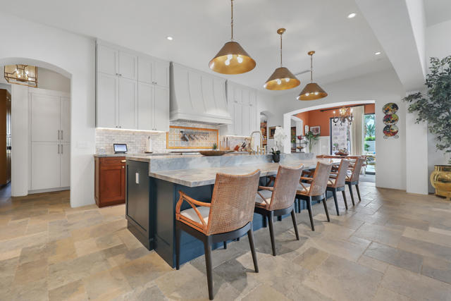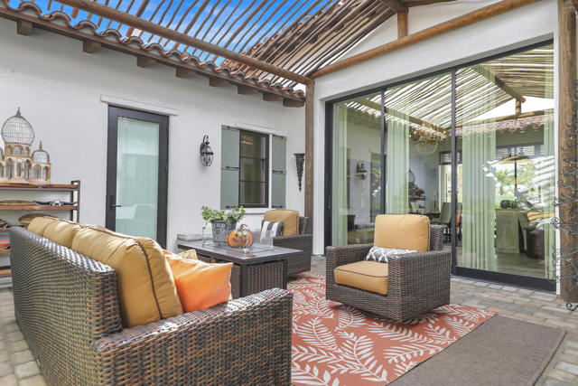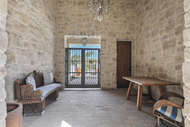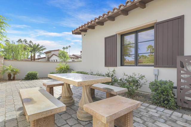 Only minutes away from El Paseo, The River and the new Disney Cotino development, hidden behind the gates of Bella Clancy this home is on a prime cul-de-sa lot with stunning views of the southern mountains, the Best in Bella Clancy. Old world charm of a Tuscan Villa! the owner spared no expense with the custom designer upgrades. From start to finish every detail of each room was being transformed into a visual delight, like a piece of art. This smart home intergrates the latest entertainment, security and convenience technologies. There are 5 bedrooms and 5.5 bathrooms. The primary suite is situated to allow privacy separated from the addional 4 ensuites. With 4,864 SF there is plenty of room for family and friends. The Great Room with a generous dining area allows for many gatherings small or large. The kitchen is a ''true'' chef's delight with upgraded appliances including a built-in wine refrigerator, quality cabinetry and gorgeous slab Quartzite countertops with sit-up island and a cozy breakfast area with built-ins that is adjacet to the backyard. The front gated courtyard entry prepares you for many delights of outdoor living. From the secluded sitting area with overhead trellis that is situated with easy access to the interior with large glass sliders. The backyard has lush landscaping that includes various citrus trees and an inviting custom pool with spa. And the View...Truly Spectacular morning or evening! The great room has tall soaring pocket sliders that allows the view to be seen from inside. There are custom balustrades that adds a coziness to the large covered patio that includes a visually inviting fireplace and convenient BBQ area.There are two separate 2/car garages. The owner has creatively used one garage as a family/friends/owner entertainment room with a mini-split air conditioner and walls of custom cabinetry. This can easily be converted back to garage usage. This property is truly a dream home with a great location. convenient to easy freeway access, hospitals and shopping centers close by.