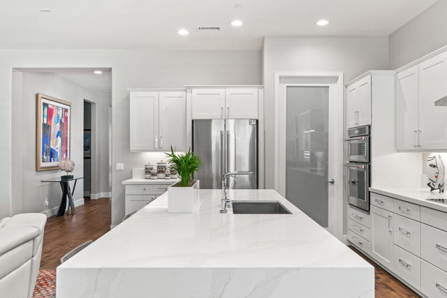 Situated on a desirable corner lot within the sought-after Del Webb Rancho Mirage community, this meticulously maintained four-year-old residence blends modern comfort with thoughtful designer detail. The solar system, including added panels, is fully paid. Distinctive features include hardwood flooring throughout, refined landscape design with premium turf in both front and rear yards, and a large pergola ideal for outdoor dining and relaxation. Inside, a chef's kitchen showcases upgraded cabinetry, countertops, appliances, and an induction range. The spacious primary suite offers a spa-style bath with upgraded counters, custom fixtures, a Panasonic heater, and custom closet organization. Additional highlights include a guest suite with new insulated windows, a versatile den or office, and an epoxy-coated garage with an upgraded door and custom cabinetry. Art lovers will appreciate the three CODA gallery installations that bring texture and personality to the interiors. The Refuge floor plan from the Retreat Series offers efficient, low-maintenance living with style. Some furnishings may be negotiated. A community dog park sits conveniently across the street, and the generous corner lot allows room for a future pool addition.