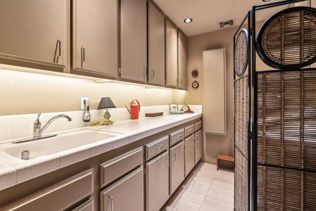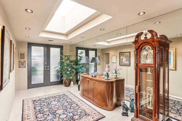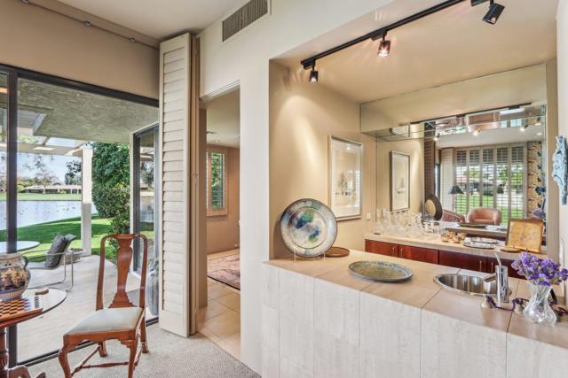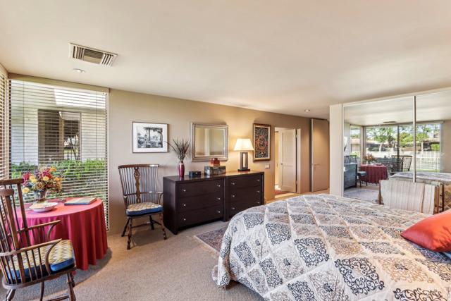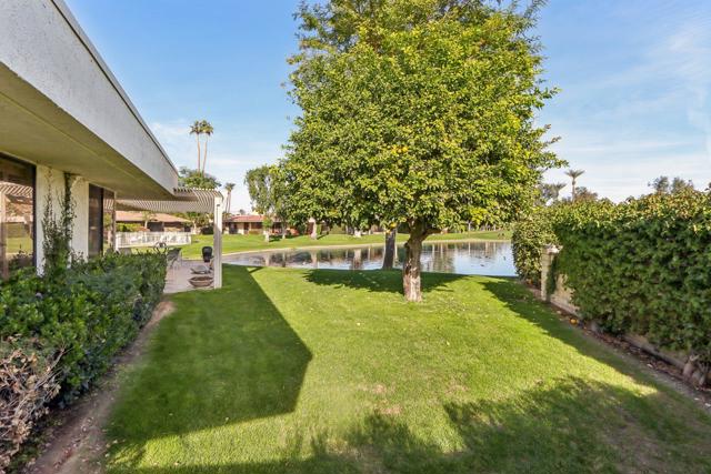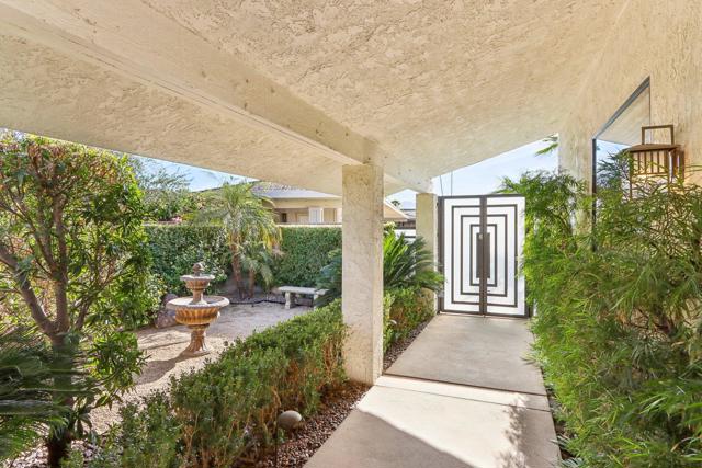 LAKEFRONT Property with Golf Course Views! Amazing views from this end of cul-de-sac Premium Location, with backyard patios facing a peaceful lake teeming with birds, set alongside the 17th hole and 16th fairway of the golf course, all framed by Mountain Scenery. This elegant home has 3 spacious Bedrooms all with private bathrooms and views of serene patios or courtyards. Step through the gated front courtyard into a tranquil, Zen-styled garden. Front double doors lead to a formal entryway illuminated by a large skylight. Expansive Living Room offers stunning views, complemented by plantation shutters for privacy, along with a cozy fireplace and a wet bar. Kitchen features granite counters and stainless-steel appliances. Current Dining Room can easily serve as a family room off the kitchen. Inviting Owner's Suite has a large walk-in closet. A guest bedroom, complete with built-in bookcases, creates an ideal space for an office or library. The picturesque Backyard patios provide a perfect setting for entertaining, and are a short distance to an association pool & spa.