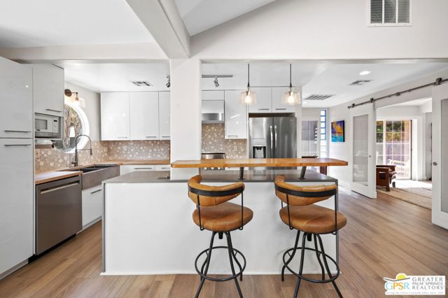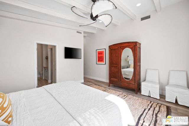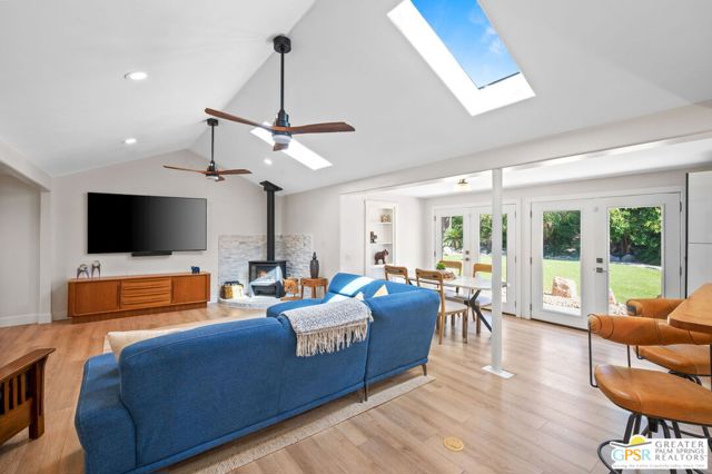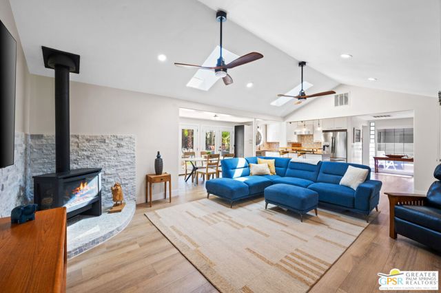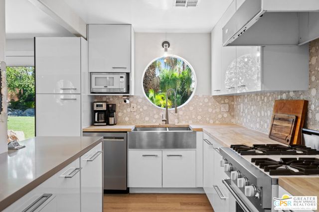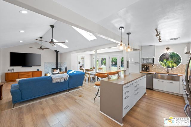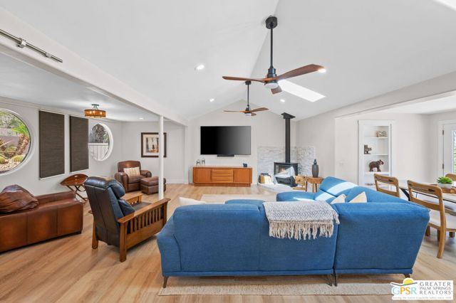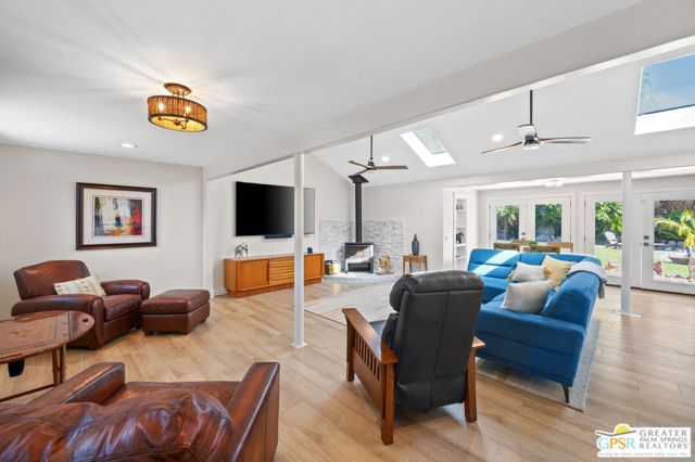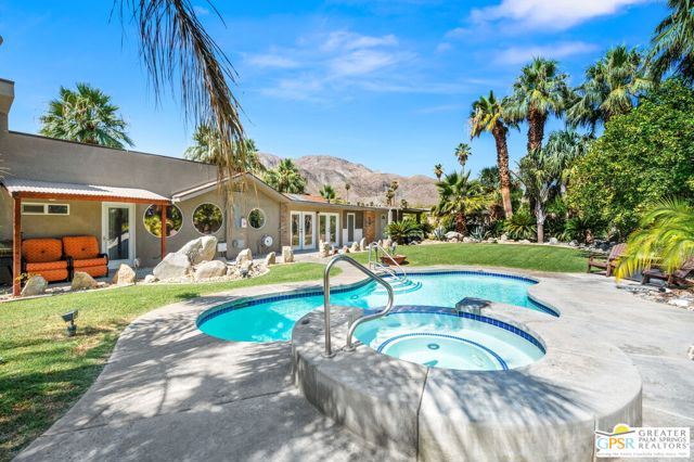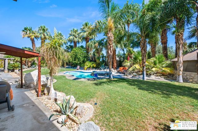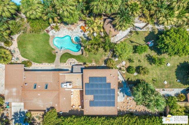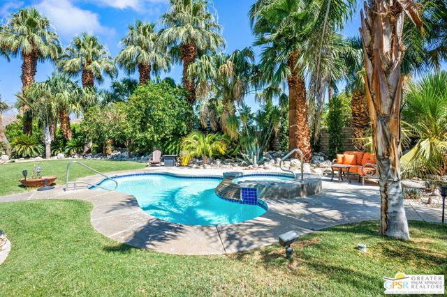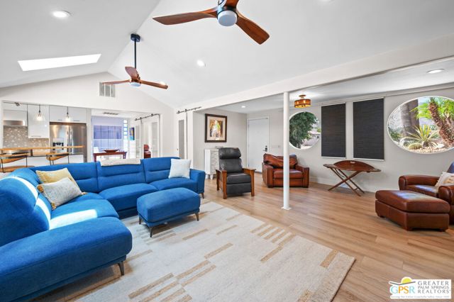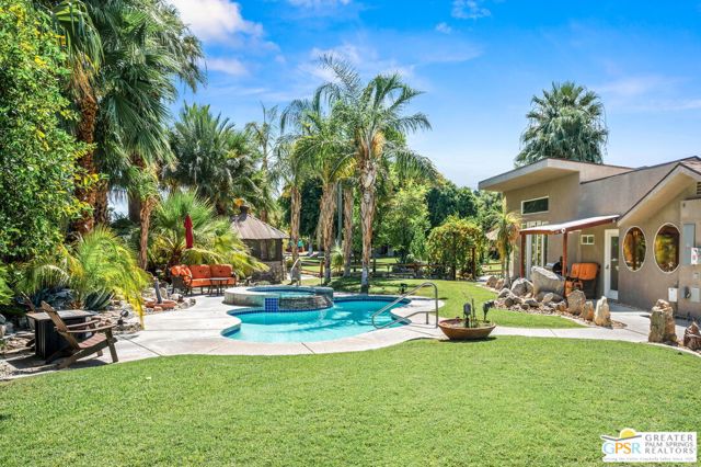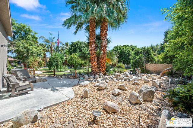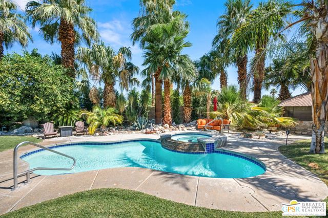 Private & Gated Rancho Mirage Mini-Estate on Over an Acre with Detached ADU and RV Garage! Rare opportunity!! Discover a rare desert sanctuary in the heart of prestigious Rancho Mirage. Tucked away on over an acre of meticulously landscaped grounds, this fully enclosed and gated mini-estate offers unparalleled privacy and versatility. Surrounded by a lush wall of mature Ficus, the property is a hidden oasis.The main residence is a captivating single-family home with mid-century character, featuring 4 bedrooms and 3 bathrooms. High, beamed ceilings and distinctive round windows create a unique architectural charm. The home has been thoughtfully updated with a new kitchen, modern flooring, fresh paint, fireplace, contemporary lighting, and efficient tankless water heaters. Comfort is paramount with two primary suites, both beautifully remodeled in recent years. An attached, fully enclosed two-car garage provides added convenience.At the far end of the property, discover the detached Accessory Dwelling Unit (ADU), a perfect retreat for guests, extended family, or potential rental income. The ADU is completely private, with its own new electronic gate entrance, and features a full kitchen, separate bedroom, full bathroom, patio and laundry facilities.Car enthusiasts and adventurers will be drawn to the brand new, oversized 2-car/RV garage, offering ample space and full RV hookups. Significant investment has been made in the grounds, including new irrigation and professional landscaping, creating a serene and beautiful environment. This is a unique opportunity to own a private, multi-generational compound with modern amenities and classic desert charm.