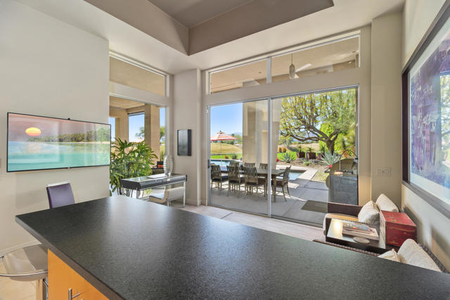 Elegant contemporary Estate in the Coveted Westgate community in Mission Hills CC. This home features stunning architecture - almost 2/3 acre with sun filled southern exposure and a 180 degree views of lake, fairway and mountains. The homeowner spent over $1M remodeling and upgrading this home. Expansive great room features a custom fireplace, buffet and wet bar. The morning room and gourmet kitchen with stainless steel appliances, black honed granite counters and custom pearwood and wenge cabinets including wine storage. Large master suite offers views, fireplace and glass tiled master bath. Home theatre features top of the line audio/video equipment and unbelievable acoustics. The guest house is the perfect space... a living area and 2 bedrooms with ensuite baths. Great room opens to an exceptional outdoor entertaining area with built-in BBQ, pool/spa, waterfalls and spacious grounds. Extensive use of custom designed metal from the entry gate to the great room fireplace and unique interior architectural wall. You'll find spectacular lighting throughout this solar powered home. This home also has a 4-car garage and its very own private gate and a brand new roof. Come home to your own very private piece of art on a magnificent lot!!!