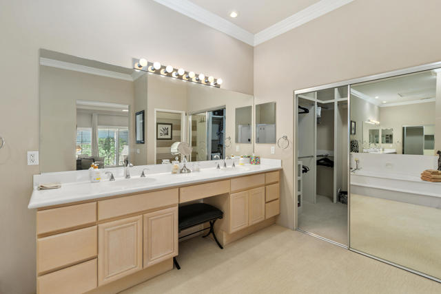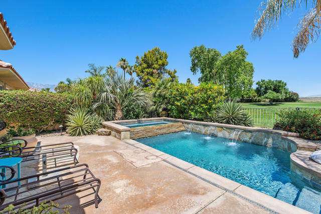 Welcome to Rancho Mirage Country Club offering 10-holes of golf at a minimal annual cost. Stunning double door etched class entry, wide foyer, oversized patio great for entertaining with your very own private pool/spa, golf course and mountain views! Large great room, fireplace, huge master suite, elaborate master bath. Open gourmet solid slab granite kitchen w/walk-in pantry, island, and large built-in refrigerator. Stained & etched glass accents, granite wet bar. Expensive custom window treatments, lots of 18'' x 18'' stone-like tile flooring. Formal dining area, separate morning room or family room off open kitchen. Private guest casita with a private entrance. Neutral creams, beige & taupe colors! Garage w/direct access & indoor laundry room w/sink/storage. This community is ideally located in Rancho Mirage and is next door to Eisenhower Medical Center. Shopping, Dining and Entertainment such as 'The River' and the El Paseo Shopping and Dining District are a short drive away. This home has it all and can be either your perfect seasonal retreat or your full-time sanctuary... A designer showcase!