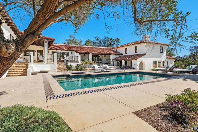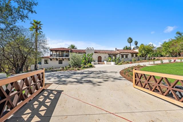 WHAT EVERYONE'S BEEN WAITING FOR! 5 YEARS IN THE MAKING-HISTORIC RANCHO SANTA FE COVENANT LILIAN RICE TREASURE LOCATED ADJACENT TO RANCHO SANTA FE VILLAGE! HISTORICAL MEETS NEW CONSTRUCTION! RESTORED AND EXPANDED TO PERFECTION AND AUTHENTICITY, THIS COVETED HISTORICAL RESIDENCE IS A ONE OF A KIND IN THE COVENANT OF RANCHO SANTA FE. ON SEWER AND NATURAL GAS, WITH WALKABILITY TO THE VILLAGE, THIS 4BD/5BA HOME, COMPLETE WITH A 2BD/1BA GUEST HOUSE AND 7 CAR GARAGE IS QUINTESSENTIALLY RANCHO SANTA FE AT ITS FINEST. HISTORICAL COLONIAL REVIVAL STYLE MEETS MODERN DAY FEATURES AND FINISHES, THIS HOME ON THE HISTORICAL REGISTER, BOASTING THE MILLS ACT FOR TAX SAVINGS, IS UNIQUE IN EVERY WAY. FEATURES INCLUDE DRAMATIC CEILINGS WITH ORIGINAL CARVED WOOD BEAMS, ORIGINAL WOOD CARVED FRONT DOOR, ORIGINAL CATALINA TILES AROUND LIVING ROOM HEARTH AND FIREPLACE, HALF MOON ARCHES, MOORISH CHIMNEY, AND CHARMING TOUCHES THROUGHOUT. THE MODERN CHEF'S KITCHEN COMPLETE WITH COFFEE BAR, WALK-IN PANTRY, AND STATE OF THE ART APPLIANCES, INCLUDES EVERY AMENITY. THE OPEN FLOOR PLAN, OVERSIZED PRIMARY MASTER BEDROOM AND ELABORATE HIS/HERS BATH AND 4 EN-SUITE BEDROOMS COMPLETE THE MAIN HOUSE. TAKEN DOWN TO THE STUDS, THERE WAS NO DETAIL SPARED IN THIS NEWLY CONSTRUCTED RESIDENCE. LOVINGLY RESTORED ON THE EXPANSIVE 2.07 ACRE LOT, THE HOME IS SET BACK AND GATED WITH GRANDIOSE CURB APPEAL. THE LARGE PRIVATE OUTDOOR POOL, FIRE PIT AND FRUIT FOREST COMPLETES THE BACKYARD SUNNY WEST FACING AMBIANCE. ROOM FOR A NORTH-SOUTH TENNIS COURT, HORSE STALLS OR PADDOCK. IDEAL FOR A SECOND HOME OR FAMILY LIVING. COMPLETION OCTOBER 2025. TRULY A RANCHO SANTA FE ENIGMA! "THE RALPH AND BELLE CLAGGETT HOUSE"