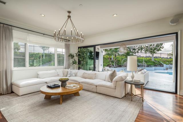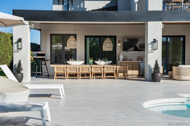 It's no surprise that the seller of this home is a world class designer. Every inch inside and out has been masterfully curated to the highest degree of elegance and perfection, with fixtures and finishes that look like they belong in Architectural Digest everywhere you look. The home features first floor master suite, top-of-the-line appliances, home gym, owned solar, spacious outdoor loggia, pristine hardscape, huge lawn area, oversized lot with ocean views, walk-in closets in every bedroom, an expansive guest suite, and access to the highly sought after Roger Rowe School in Rancho Santa Fe. Take advantage of all that Cielo has to offer with an Olympic pool, clubhouse, parks, tennis, pickleball, gym, and community activities. This home is an absolute gem and not to be missed!