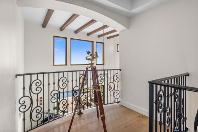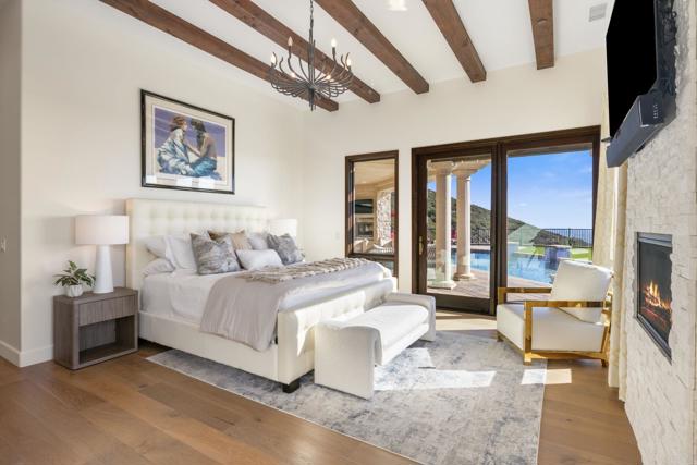 If Heaven had an address, this would be it! A sanctuary where seemingly endless ocean views steal the spotlight with breathtaking panoramas stretching from Catalina Island to downtown San Diego. A sweeping visual masterpiece defines this extraordinary home. Perched on one of the most coveted view lots in Rancho Santa Fe’s tranquil Cielo hillsides, this one-of-a-kind custom residence is a dream come true for anyone passionate about captivating vistas and entertaining against a stunning natural backdrop. Set against classic Mediterranean architecture, the home is meticulously designed to showcase those expansive, unobstructed views from nearly every room. Completed in 2020, this energy-efficient haven features 4 bedrooms and 3.5 bathrooms within 4,115 square feet of open, luminous living space. The main-level primary suite offers dual walk-in closets and large windows framing the endless horizon. Upstairs, bedroom suites open onto a private terrace where you can soak in miles of pristine natural habitat, surrounded by serene landscapes and protected open space. The open gourmet kitchen—with a large center island and professional-grade stainless steel appliances—is perfectly positioned to keep the ocean views as the centerpiece while you cook and entertain. The great room, with soaring ceilings and abundant natural light, invites you to relax and savor the stunning scenery that fills every corner. Wine lovers will appreciate the dedicated cellar, ideal for housing your finest vintages, all enjoyed in a setting where the view remains your constant companion. Step outside to a private outdoor oasis featuring a sparkling pool, covered loggia with a fireplace, patio, and BBQ island—all designed to maximize enjoyment of the panoramic surroundings. Additional highlights include a 3-car garage, owned solar panels, a tankless water heater, and ample storage. Located within the prestigious Rancho Santa Fe community, Cielo offers access to an opulent clubhouse and abundant recreational amenities, all complemented by highly regarded schools. This is not just a home; it’s a lifestyle — where every glance out the window is a reminder of nature’s grandeur