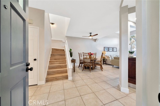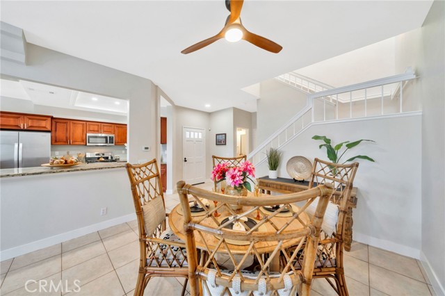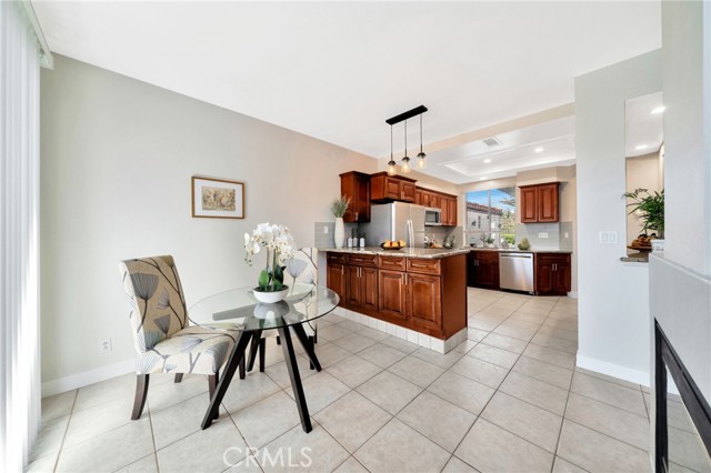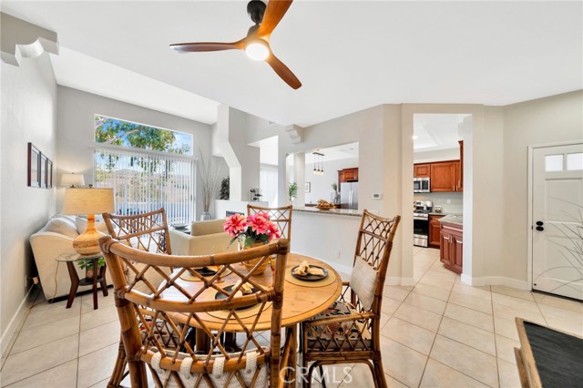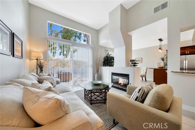Welcome to your dream home! This beautiful two-story townhome is nestled in Rancho Santa Margarita; a vibrant community rated the safest city in California. 1,644 square foot layout with 3 spacious bedrooms and 2.5 updated bathrooms. Ideal, end of cul-de-sac location, with serene canyon views. The reimagined kitchen has been expanded and opened to adjoining living and dining rooms, enhancing a very comfortable living space. Features include granite counters, updated backsplash, stainless steel appliances (range and refrigerator are new), breakfast nook, and recessed lighting. The spacious dining and living rooms transition seamlessly and feature a cozy two-way fireplace (opposite side is in the breakfast nook). Two large sliding glass windows provide plenty of natural light, and open to a large back patio. The added outdoor space is perfect for larger gatherings (or just enjoying the environment). Upstairs: The large master suite features a sliding glass window (with canyon and sunrise views), balcony, and walk-in closet. The en-suite bathroom includes new garden tub with tile surround (and shampoo niche), new quartz counters, lighting, and plumbing fixtures. The hall bathroom has also been updated with new tub / shower surround, vanity, and plumbing fixtures. The 2nd and 3rd bedrooms provide ample room for queen beds and plenty of closet space. Hard surface flooring throughout, with tile downstairs and attractive luxury vinyl plank floors on the stairs and 2nd floor. In addition to the Candelero pool, your SAMLARC membership includes access to all the city-wide amenities, such as: multiple swimming pools, the Beach Club w/ sand bottom swimming lagoon, basketball, tennis, pickleball, and volleyball courts, clubhouse, parks, and fishing. Other local features: great schools, a skate park, dog park, miles of hiking & biking trails, and the Tijeras Creek golf course. Low property taxes (approximately 1.02%) Welcome to Rancho Santa Margarita, a great place to live!