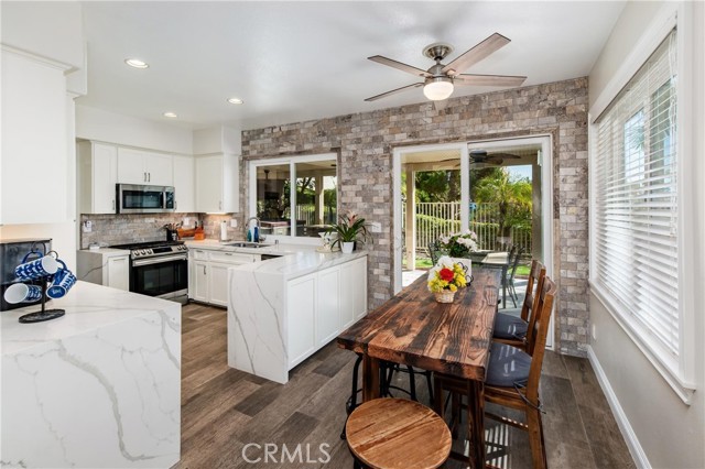 Location, Location, Location! Nestled at the end of a private, single-loaded cul-de-sac, this beautiful 4-bedroom, 2.5-bath entertainer’s dream home offers the perfect blend of comfort, style, and versatility. All bedrooms are conveniently located upstairs, including a spacious fourth bedroom/flex space that can easily serve as a spacious home office, family room, exercise studio, creative space—or simply a generous bedroom since it has its own closet area. The possibilities are endless! The recently upgraded kitchen is a chef’s delight with custom pull-outs and stunning countertops, while the remodeled bathrooms showcase modern finishes, including a luxurious primary bathroom with a walk-in shower, dual sinks, and beautiful custom-color cabinetry. Property has been freshly painted with designer colors! Enjoy low-maintenance front and backyards designed for relaxation and entertaining. The private backyard features a soothing jacuzzi, a movable island/bar with BBQ and beverage refrigerator, ceiling fans with lights, and multiple spaces to gather with family and friends. A separate downstairs laundry room adds convenience. Located in a vibrant community, residents enjoy access to 5 pools, a beach club, lake, water park, tennis courts, scenic trails, parks, award-winning schools, and so much more! This is a rare opportunity to own a home that offers privacy, convenience, and endless amenities—all in one of the most sought-after neighborhoods!