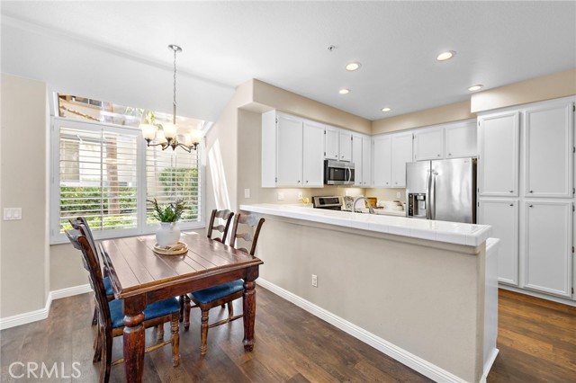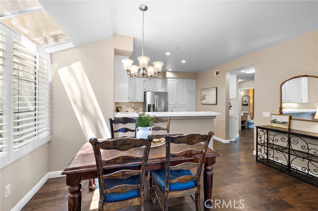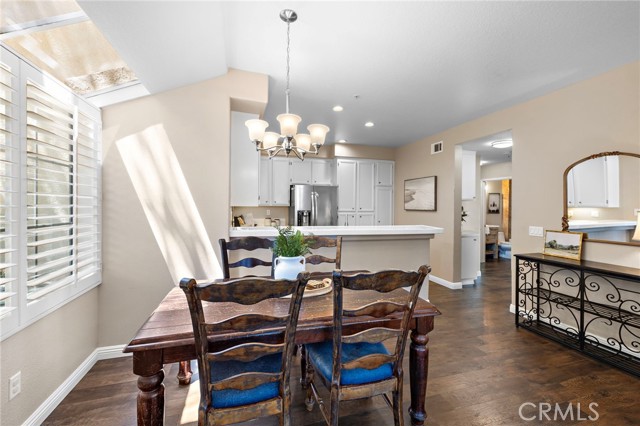 From the moment you walk in, soaring ceilings and natural light create a bright and inviting atmosphere. As an end-unit, the home also benefits from extra windows, adding even more light and a greater sense of openness throughout. With shutters already in place, you’ll enjoy both the look and the savings of this major upgrade from day one. The living room is anchored by a fireplace, creating a comfortable place to relax after a long day or gather with friends. Just beyond, the kitchen seamlessly connects to the dining and family areas for an open-concept feel that makes both everyday living and entertaining easy. Neutral white cabinetry provides plenty of storage and a clean backdrop, ready for your own personal style to shine. The layout is exceptional—both practical and flexible to fit a variety of needs. On the main level, you’ll find a bedroom and full bathroom (sink, toilet, tub, and shower). Upstairs, two additional bedrooms each feature an en-suite bathroom (a bathroom inside the bedroom). The primary suite stands out with two closets and a double-sink vanity offering added convenience and functionality. Everyday essentials are well covered: an interior laundry closet keeps chores simple, a two-car attached garage means direct access and extra storage, and a gated patio offers the perfect spot to unwind outdoors and take in the views. Beyond your front door, Tierra Montanosa offers resort-style amenities just around the corner, including a pool and spa. Living in Rancho Santa Margarita also means access to the scenic lake and lagoon, plus Altisima Park with a playground, pool, and wide-open green spaces. Shopping, dining, and well-regarded schools are all nearby, with excellent proximity to highly regarded Melinda Heights Elementary. Blending comfort, function, and a standout location, this home makes it easy to enjoy the best of Rancho Santa Margarita living.