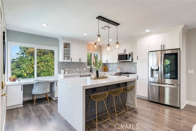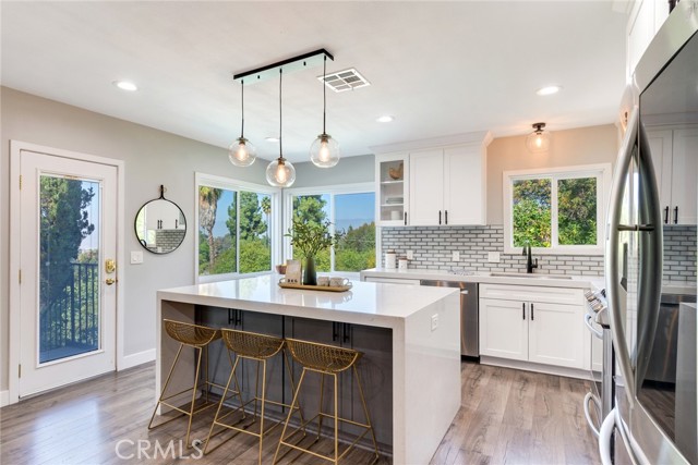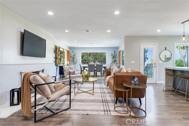 Outstanding property in Redlands coveted LaLa Land in South Redlands! This updated mid-century beauty enjoys a bright and airy open floor plan with gorgeous views of the pool and our East Valley mountains beyond. Kitchen and both baths, one upstairs, one downstairs have both been beautifully renovated with a bright and airy vibe that is perfect for this iconic mid-century home. Per County Assessors's office, property has 3 bedrooms. One of the bedrooms downstairs, does not have a closet. The living space here has its own private entrance from either carport or backyard patio and can be used as a bedroom suite or private office / art workspace. Nearby bathroom offers an exterior door and can double up as a pool bathroom; oversized Laundry room is also located on this level and is so convenient for coming in from the pool or gardening the vegetable plots and expansive lot. This approximately 14,000 sq. ft. property features a large swimming pool and jacuzzi, covered patio, two sheds, one with running water and electricity. RV parking/extra parking for guests are found below at private gated entrance at rear of property on Pacific Street. Check with city and confirm ADU possibility. Don't miss the tool room near poolside where the pool equipment is found. This home is a delight in every way!
