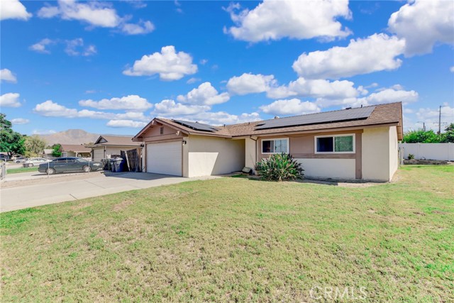 This is a large corner lot with a four bedroom two bath solar home. It is enclosed with a chain-link fence and a gate, Behind the wooden fence is RV parking, so you have a place for your toys. Inside is the large living/family room with connection to the bright eat-in kitchen, which is the heart of the home. These rooms are tiled for allergy sensitive noses and the bedrooms all have carpet. This has potential, it just needs your imagination and personal touches. There is a covered patio just perfect for your family and friends to gather for a BBQ or a game of croquet in the large backyard. Come see for yourself and make this your forever home.
