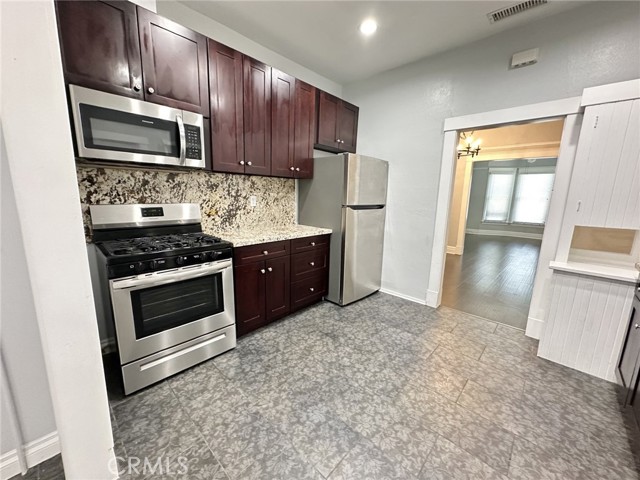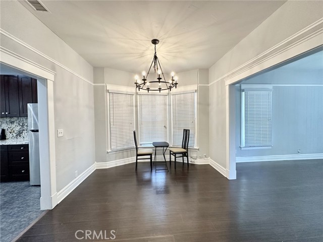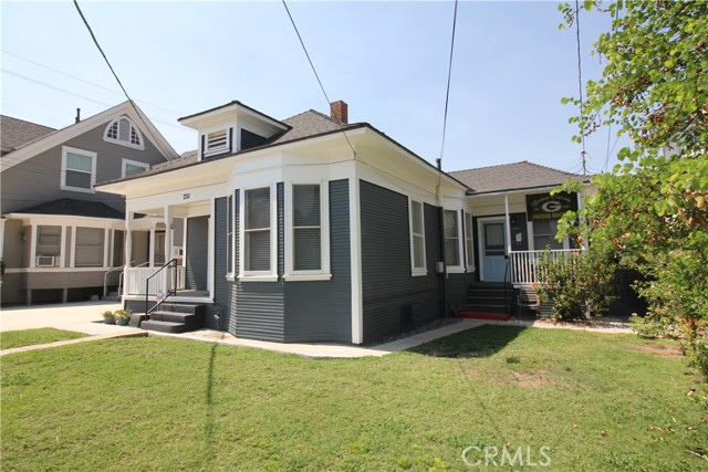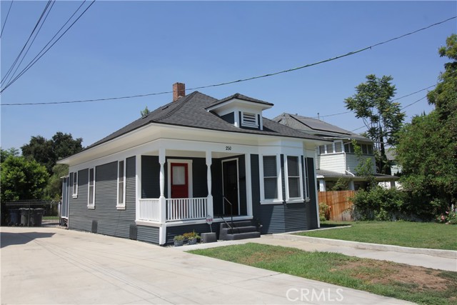 BEAUTIFULLY REMODELED DUPLEX IN DOWNTOWN REDLANDS FEATURING A 2 BEDROOM AND 1 BATH UNIT AND A 1 BEDROOM AND 1 BATH UNIT. EACH WITH SEPARATE BACK YARDS. LONG SHARED DRIVEWAY WITH A WROUGHT IRON GATE. EACH UNIT HAS A SEPARATED SMALL FRONT PORCH. THE UNIT WITH 2 BEDROOMS HAS THE FOLLOWING FEATURES: BOTH TILE AND HIGH END DESIGNER VINYL FLOORING, TALL CEILINGS WITH LARGE BASEBOARDS, CEILING FAN IN LIVING ROOM, CENTRAL AIR AND HEAT, BAY WINDOWS IN LIVING ROOM AND IN DINING ROOM, MODERN BLACK WROUGHT IRON CHANDELIER, WASHER/DRYER HOOKUPS, GAS STOVE/OVEN COMBO, DARK WOOD CABINETS WITH GRANITE COUNTERTOPS, BUILT IN SHELVING, BUILT-IN MICROWAVE, VERY LARGE WALK-IN PANTRY, REMODELED BATHROOM WITH DESIGNER SHOWER/TUB COMBO WITH SHELF FOR SHAMPOO/CONDITIONER, MIRRORED VANITY WITH MARBLE COUNTERTOP, DESIGNER MIRROR & LIGHTING TO COMPLIMENT VANITY. 1 BEDROOM UNIT FEATURES: BOTH TILE AND DESINGER VINYL FLOORING, CEILING FAN IN LIVING ROOM, TALL CEILINGS, LARGE BASEBOARDS AND CROWN MOLDING, MINI SPLIT AC UNIT IN LIVING ROOM AND WALL AC UNIT IN BEDROOM, BEDROOM HAS TRADITIONAL RAISED PANEL HALF WALL WAINSCOTING, KITCHEN HAS GAS STOVE/OVEN COMBO, WHITE CABINETS WITH QUARTZ COUNTERTOP, WINDOW SINK, PORCELAIN TILE ON WALL, BATHROOM HAS DESIGNER TILE IN SHOWER WITH SHELF FOR SHAMPOO/CONDITIONER. GROUNDS HAVE CONCRETE PAVED WALKWAY, FRUIT TREES, GRASS ON 2 BEDROOM SIDE, CONCRETE PAVED PATIO ON 1 BEDROOM SIDE. A MUST SEE