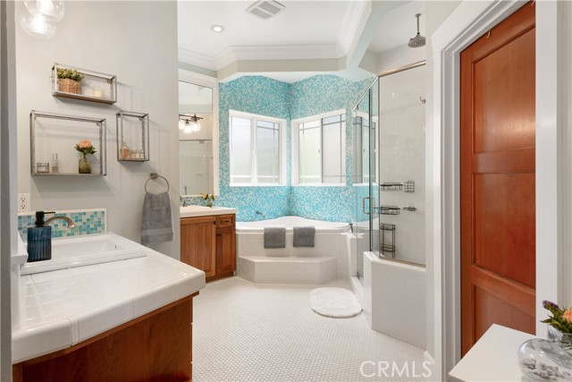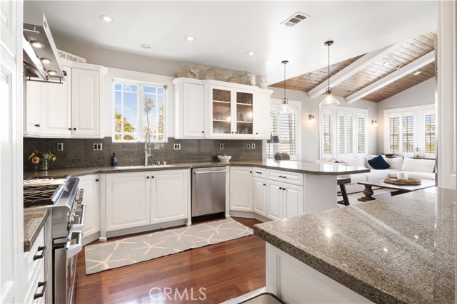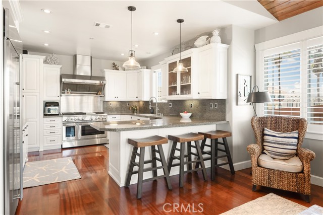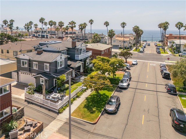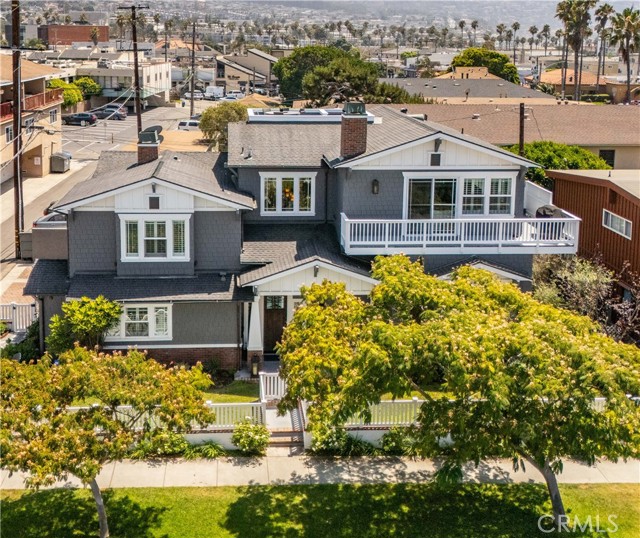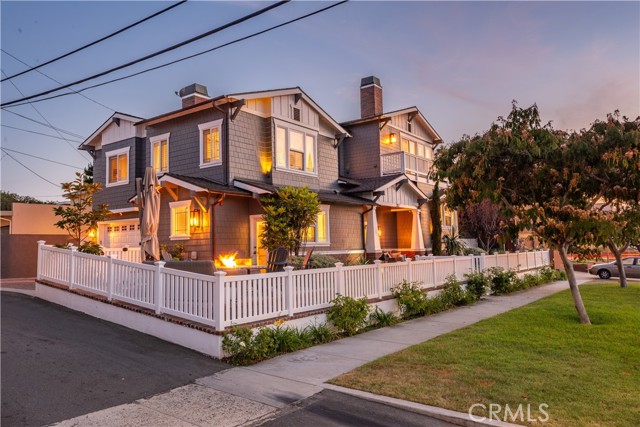 Nestled just a block from the vibrant Riviera Village, Esplanade, and the beach, this Coastal Craftsman home embodies the essence of a classic beach house. With soaring ceilings and hardwood floors throughout, the open, flexible floor plan allows for seamless living and entertaining. The dual-sided fireplace connects the inviting living room and formal dining room, creating a warm and welcoming atmosphere. The gourmet kitchen, complete with stainless steel appliances, flows effortlessly into the expansive family room, which also features a cozy fireplace, perfect for gathering. A separate breakfast room offers an intimate space for casual dining. The relaxing primary suite offers a peaceful retreat, while the oversized lower-level guest bedroom—easily adaptable as a second family room—adds extra flexibility. Enjoy ocean breezes and panoramic views from the stunning roof deck, the perfect place to unwind after a day at the beach. The outdoor fire pit in the enclosed front yard creates an ideal space for entertaining under the stars. Additional features include a 2-car garage with room for 3 cars in the driveway and central air-conditioning, ensuring comfort year-round. This home is the epitome of coastal living, combining comfort, style, and location to create a truly exceptional lifestyle.