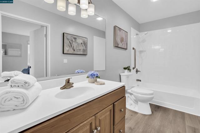 Enjoy coastal, resort-style living in the Marina Bay community! This premier end-unit condo offers an open-concept floor plan with thoughtful updates throughout. Highlights include a fully remodeled guest bathroom with a new walk-in shower and vanity, complemented by newer flooring and fresh paint that create a bright, modern feel. The convenience of ground-floor living is paired with a private patio just outside your door. Spend weekends strolling the Bay Trail or exploring the Marina Bay Farmers Market. Located in a gated waterfront community, commuting is effortless with access to the Richmond Ferry and major freeways nearby.