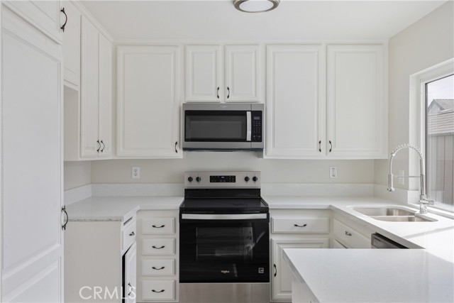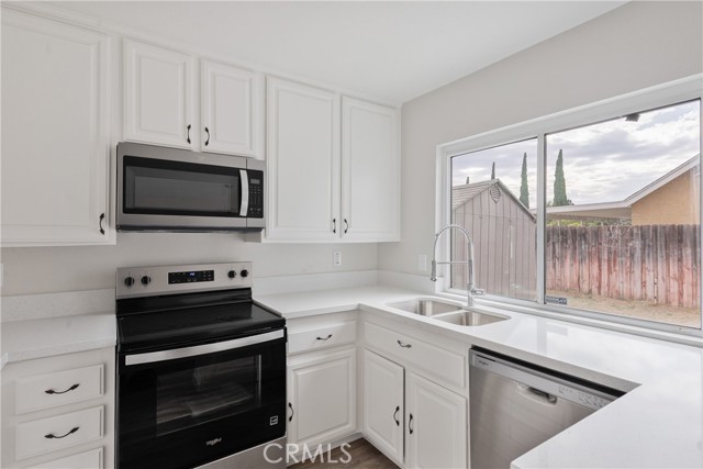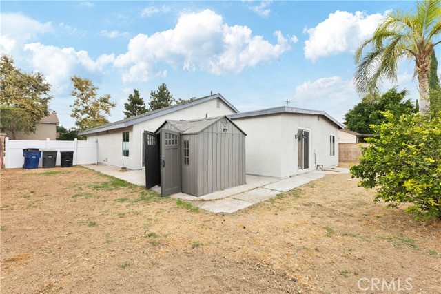 ..Fully remodeled and move-in ready....Possible RV parking at the right side of garage.!!!!.New, new, new designer paint inside and out!!l.....Brand new A/C (will be installed after acceptance of offer for security reason) and HVAC.......Gourmet kitchen is presented with new Quartz counter, new sink, new faucet, lots of cabinets, and brand new Appliances.......Energy efficient double pane windows and the patio slider door......New Luxury Vinyl plank flooring everywhere including hallway and the bathrooms.....New Berber Carpet in bedrooms.....New closet doors and baseboards.....Garage is newly dry walled and painted, and comes with roll-up garage door with auto opener, and a washer and a dryer.....Both bathrooms are offered with new lights, re-glazed full tubs, new vanity and a new toilet......Large back yard has sturdy and secure block wall fences and the large storage shed is a definite plus!!! Notice the new vinyl fence and the gate in the front.....Front door is to the left through the wooden gate which guarantees the maximum security for the home owner......Sprinklers are also new in the front and on auto timer, and will be green soon with new grass!!! New Epoxy coating for garage floor is a highly desirable feature......Fantastic location as the La Sierra freeway access, Shopping malls, and school, and all entertainment spots are so close by.......Super quiet neighborhood!!!........NO HOA......