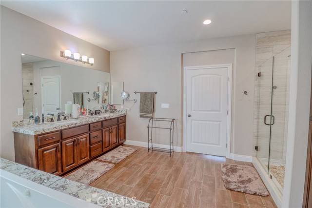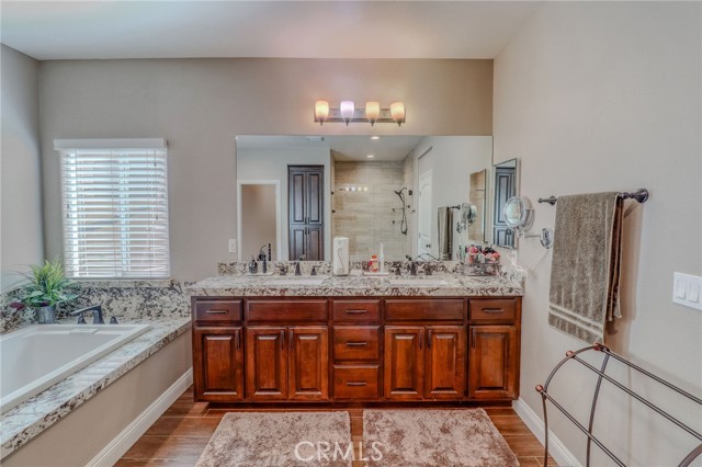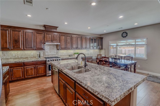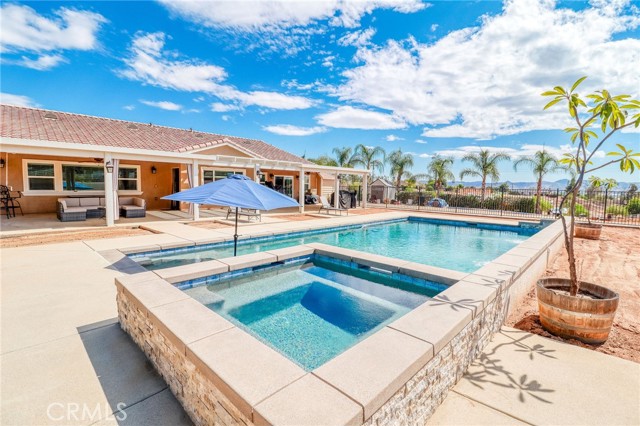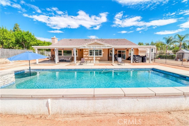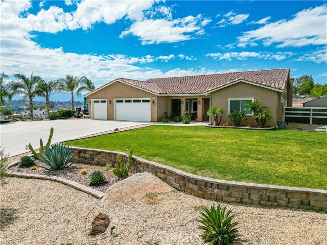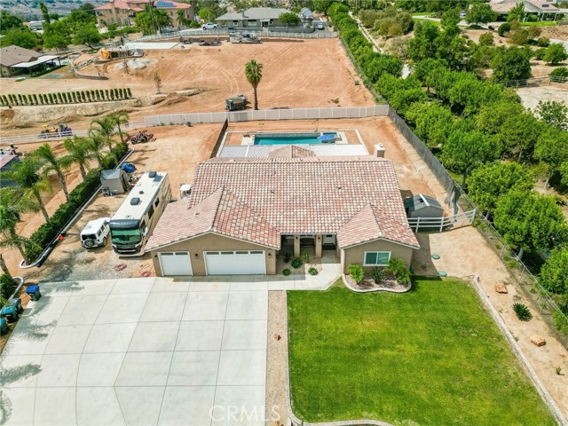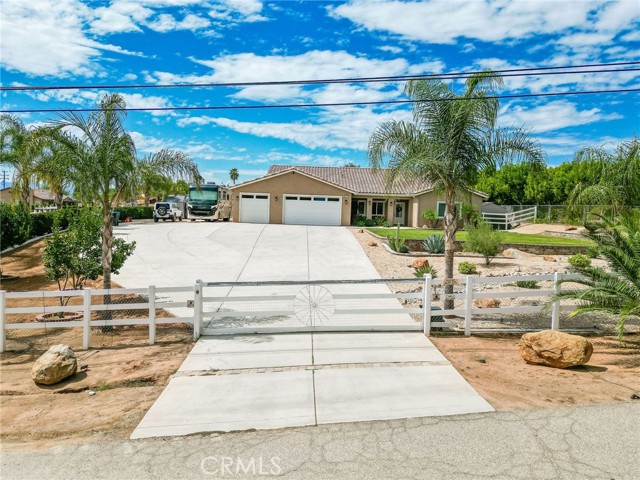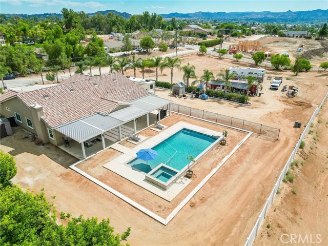 Welcome to your dream home! This custom-built home sits on 2.5 acres with ample space that has the potential to be subdivided into 2 lots or build a casita, ADU (Accessory Dwelling Unit), or a custom garage for all of your off-road toys. The property has mountain views and is in one of the most desirable areas of Woodcrest. The property is zoned for horse and Agricultural use. This beautifully spacious 4-bedroom, 2.5-bath home offers 2,827sq. ft. of living space. It offers an open floor plan with an open kitchen, a large island to entertain your guests and overlooks the family room and backyard. The kitchen has lots of cabinet space with a butler’s pantry. Kitchen has granite countertops, marble backsplash and tile flooring throughout the house. Step into your luxurious primary suite featuring a jetted tub, walk in shower, dual vanities and a spacious walk-in closet. As you enter out to the backyard you are welcomed by a 20’ x 40’ fully automated saltwater play pool, with a Baja reef entry, large spa and waterfalls. The backyard offers an abundance of additions of any kind to create your own oasis. The home is equipped with dual-zone HVAC, and dual-glazed windows. The neighborhood offers a quiet feel but is still close to schools such as Martin Luther King High School, shops and other local amenities. This home offers the best of both worlds peaceful living with city convenience. You won’t want to miss this opportunity!!