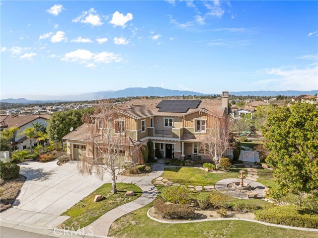 Opportunity is knocking for the discerning buyer on this Mockingbird Canyon Alicante Estates Home with gorgeous views! Solar, PAID in full. This home offers entry foyer, formal living and dining rooms. The Great Room offers kitchen with coffee bar, wine cooler in island, a walk in pantry, microwave, cooktop and double oven, informal dining and computer desk, a family room with stone fireplace, built in speaker system and a view you do not want to miss! Main level offers a bedroom with full ensuite bath, a laundry room, with folding counters and a soaking sink, a powder room, and access to the 3 car garage. Upstairs, there 4 bedrooms, one has an ensuite bath, 2 bedrooms have a jack-n-jill bath and the Primary Suite. Primary Suite offers a balcony with gorgeous views! there are his and her closets, and an extra large bathroom with two sinks, a makeup counter, jacuzzi tub and separate shower. There are linen cabinets and a bonus room with a balcony. The yard area is landscaped with plants, trees and flowers and a play area. The three car garage has one stall with a pull thru and a dog run set up.