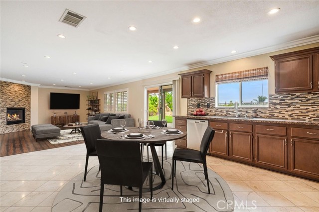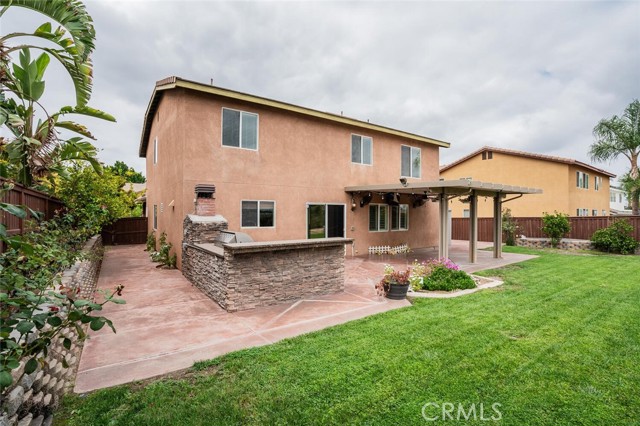 An exceptional opportunity to embrace a lifestyle of peace, luxury, and endless entertainment in the serene gated community of Victoria Grove. Imagine stepping into a stunning, move-in-ready residence that has been meticulously remodeled to perfection. This beautiful home boasts four spacious bedrooms and two and a half bathrooms, designed with a modern, open-concept layout that feels both warm and inviting. From the moment you enter, the bright and airy living room welcomes you, seamlessly flowing into a stylish dining area, an upgraded kitchen, and a cozy family room complete with a fireplace – the ultimate setting for creating cherished memories with family and friends. The kitchen is a chef’s dream, featuring ample cabinet and counter space, along with direct access to the breathtaking backyard. Hosting will never be the same again as you entertain effortlessly between indoor comfort and outdoor charm. With over $100,000 invested in thoughtful renovations, this home truly shines with its tasteful design, abundant natural light, and a floor plan that combines comfort and practicality flawlessly. Step outside into your private oasis – a beautifully landscaped backyard that embodies the essence of outdoor living. Enjoy gatherings under the covered patio, fire up the built-in BBQ area adorned with granite countertops, and take in the stunning mountain views that surround you. Nature lovers will delight in the impressive collection of mature fruit trees, including Meyer lemon, Sunkist lemon, mandarins, oranges, pears, cherries, apples, peaches, pomegranates, guavas, apricots, black mission figs, plums, persimmons, and avocados – a true garden of abundance. Victoria Grove isn’t just a community; it’s a lifestyle. Residents gain exclusive access to outstanding amenities such as the sparkling pool and spa, scenic parks, picnic areas, playgrounds, and sports courts, fostering a vibrant and active neighborhood spirit. Its prime location adjacent to the award-winning Lake Mathews Elementary School offers families peace of mind and convenience, while nearby shopping, dining options, and easy freeway access connect you effortlessly to the wider world. Don’t miss your chance to own this beautifully maintained, move-in-ready gem in Victoria Grove. It’s time to step into a new chapter of your life filled with comfort, beauty, and unforgettable moments.