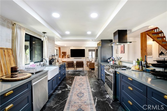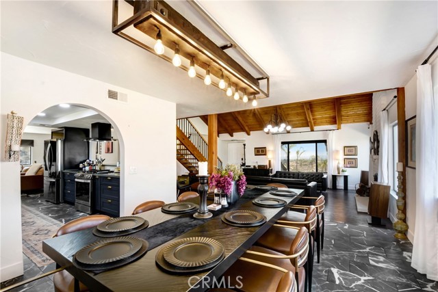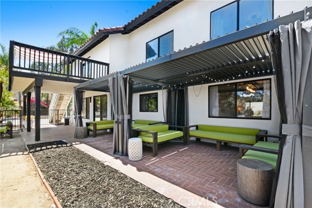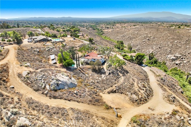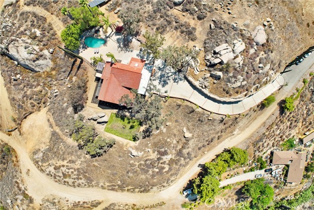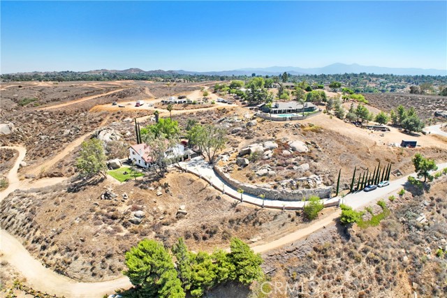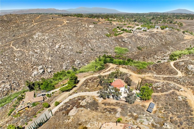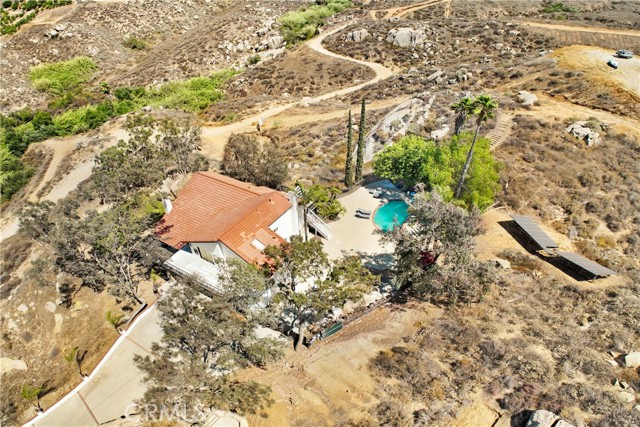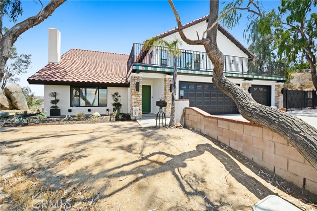 Stunning Spanish-Modern Hillside Retreat in Woodcrest! Experience rural luxury living in this unique two-story home perched on 2 acres with over $125,000 in premium upgrades and unmatched 360° panoramic views of Riverside. A curved rock retaining wall and lighted driveway welcome you to a beautifully landscaped entrance. Enjoy breathtaking sunsets from the 40-ft balcony. Step inside to soaring vaulted natural wood ceilings, custom grey tile flooring, and modern finishes that create a warm and spacious ambiance throughout. The entry level features a formal living and dining area, along with a fully remodeled chef’s kitchen featuring a sleek new bar table—ideal for hosting and entertaining. Just off the kitchen, the inviting family room offers a cozy second bar and coffee nook. Upstairs, retreat to three generously sized bedrooms, including a luxurious master suite and a flexible guest room/office overlooking the pool, spa, and hills.Outdoor living shines with a covered patio, retractable sunshades, and serene natural surroundings that offer privacy and relaxation at every turn. A true hidden gem-this property combines modern comfort, timeless design, and breathtaking scenery.