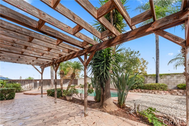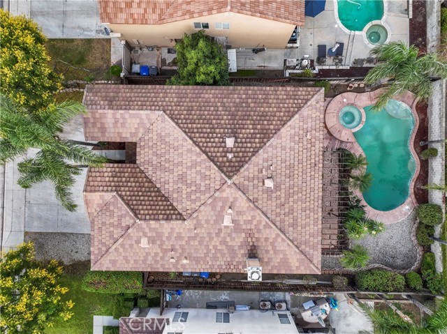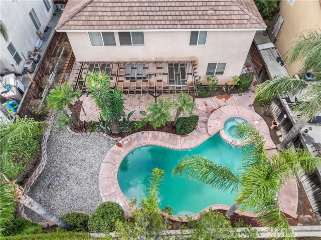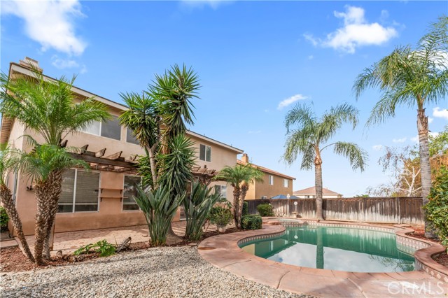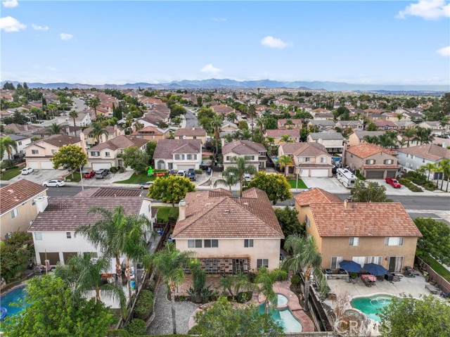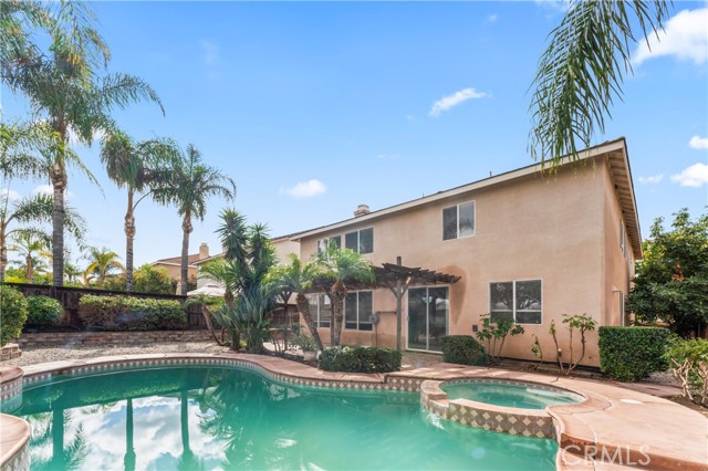 Spacious 5 bed, 3 bath, 2 story home for sale in the popular neighborhood of Orangecrest! Kitchen open to dining and family room with floor-to-ceiling cabinets with pantry and a desk space, a farm sink, and island for added prep space. Fireplace in the family room. Additional living room in the front. Downstairs bedroom and 3/4 bath with walk-in shower. Primary upstairs suite with separate walk-in shower and tub, a massive two-sided walk-in closet, and double vanity with two sinks. Huge open loft upstairs with additional hall storage. Two sinks in hall bathroom shared between three additional upstairs bedrooms, one of which is extra large with two closets. Private pool, spa, and covered patio in a landscaped backyard. Trees surround the property for partial shade. Separate attached garages for a total of three covered parking spaces plus extra driveway space. Short walk to Orange Terrace Park and all sorts of dining and shopping options are a short drive away in all directions. No HOA and low taxes!