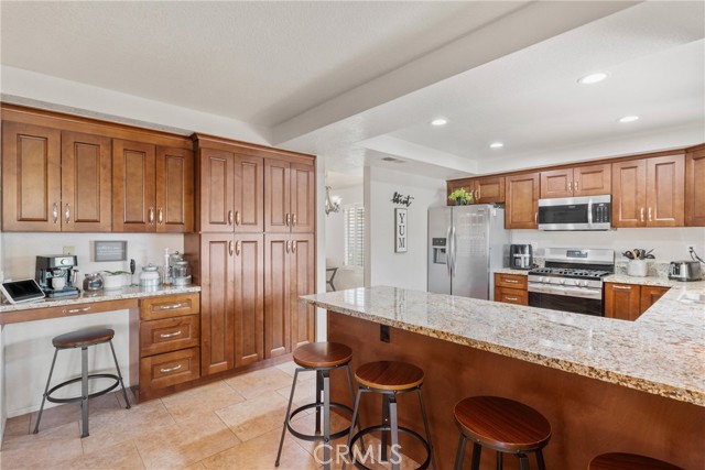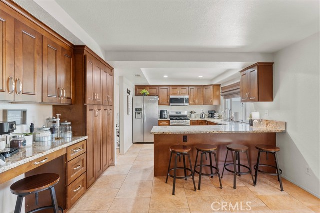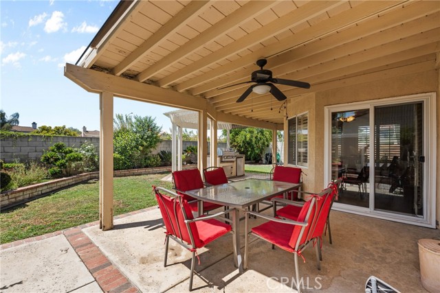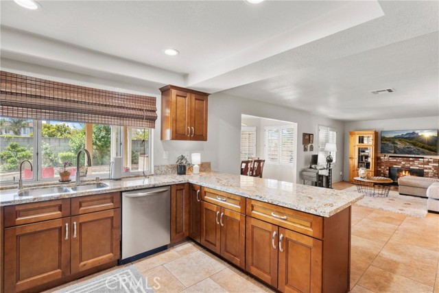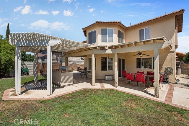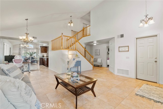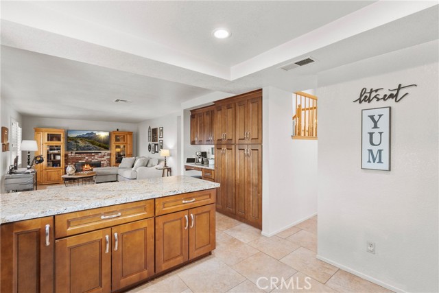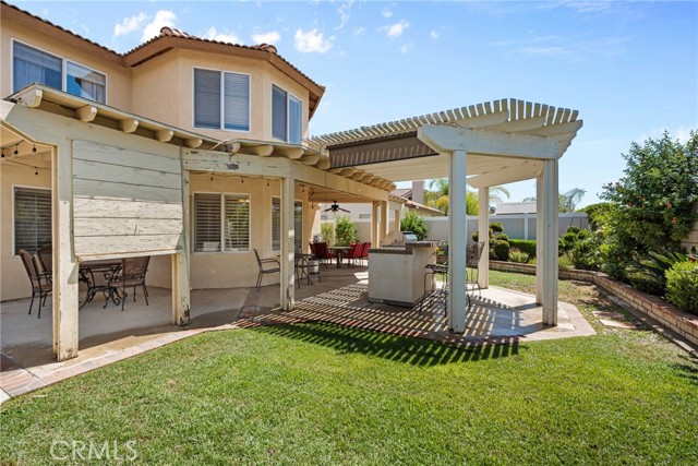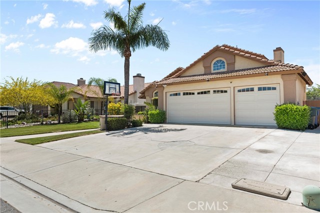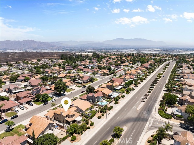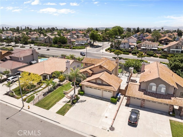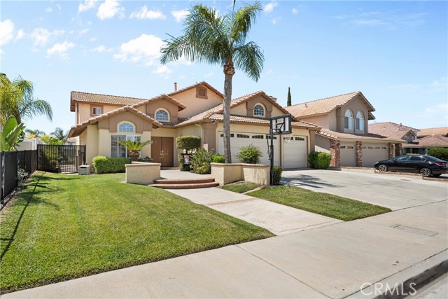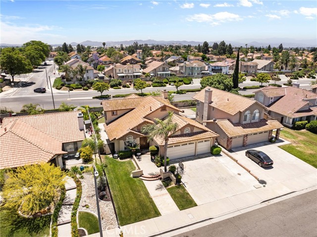 Discover exceptional living in this beautifully upgraded two-story home, perfectly located in one of Riverside’s most sought-after neighborhoods—Orangecrest. Nestled just steps from the expansive Orange Terrace Community Park, this residence offers an unmatched combination of elegance, comfort, and convenience. The main level features dramatic cathedral ceilings over a formal living and dining room, creating a grand first impression. The gourmet kitchen has been fully remodeled with rich granite countertops, stainless steel appliances, a custom coffee bar, and opens seamlessly to a bright breakfast nook and a welcoming family room with a charming brick-accented fireplace. A downstairs bedroom and full bath provide ideal guest accommodations, along with a spacious laundry room and direct access to the three-car garage. Upstairs, retreat to the luxurious primary suite with a spa-inspired en suite bath, dual vanities, a soaking tub, and a separate shower. Two additional bedrooms and a stylish hall bath complete the upper level. Thoughtful upgrades include plantation shutters, designer lighting, and ceiling fans throughout. The exterior is equally impressive, with an oversized driveway that accommodates up to four cars, a covered patio with a built-in BBQ island, and professionally designed landscaping and hardscaping. Located in a highly desirable school district, and just minutes to the 215 freeway, shopping, dining, and major employers, this home offers an ideal lifestyle for those seeking luxury, community, and convenience.