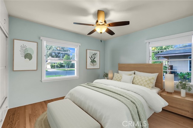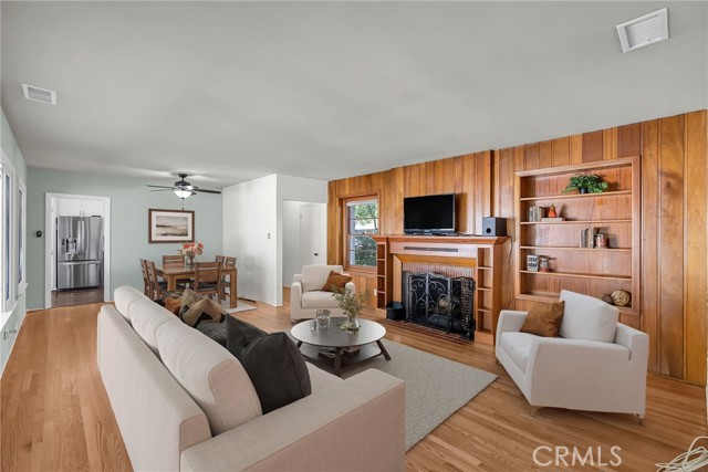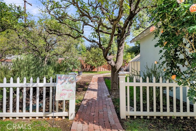 This adorable 2-bdrm, 2-bath home, built by renowned Riverside builder Harry Marsh, exudes timeless character and pride of ownership. With approximately 1,300 sq. ft. of living space on a generous 8,276 sq. ft. lot, this residence has been lovingly cared for by only two families over its 76 years — a testament to its enduring appeal and comfort. Step inside to discover original hardwood floors throughout, including beneath the carpet in the primary bedroom suite, which features its own private remodeled bathroom and separate entrance — a rare find in homes of this era. The living room offers inviting warmth with a wood-burning fireplace, flanked by a built-in bookshelf and a custom soundbar for your flatscreen TV. The remodeled kitchen blends vintage charm with modern convenience, featuring a corner sink overlooking the tree-lined street, stylestone countertops, new cabinetry, newer gas stove, a coffee station, and a refrigerator included with the sale. Additional highlights include a vintage telephone alcove, indoor laundry with washer and dryer (also included), and central air/heat for year-round comfort. Both the front and rear doors are newer, and a dual sweep cleanout and sewer line were installed less than 10 years ago for peace of mind. Outside, you’ll find a 2-car detached garage behind a gated driveway, complete with lots of cabinetry and an auto roll-up door. The backyard is a private treasure — enclosed by a charming white picket fence that separates the lush garden area. Enjoy your very own greenhouse, shed, rose bushes, and an abundance of fruit trees, including four orange trees, one fig, one peach, a bay leaf tree, and a rosemary bush — perfect for making fresh smoothies or adding homegrown flavor to your meals. The covered back patio offers the perfect setting for year-round entertaining. All of this is ideally located near the Riverside Plaza, downtown Riverside, the Fox Theatre, the Mission Inn Hotel & Spa, and Mt. Rubidoux hiking trails. Surrounded by some of the best neighbors you’ll ever meet, this home sits on one of the loveliest tree-lined streets in the historic Wood Streets neighborhood — a place that feels more like New England charm with Southern California sunshine. Here, neighbors watch your pets, pick up your newspaper, and roll in your trash cans if you forget — a true sense of community that makes this home more than a place to live... it’s a place to belong.