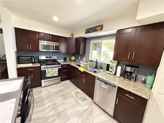Welcome to this spacious 4-bedroom, 3-bathroom home in Riverside, offering both comfort and functionality. From the moment you arrive, you’ll be greeted by great curb appeal and a charming brick pathway leading to the front entrance. Inside, the home features tile flooring throughout and ample closet space for all your storage needs. Nearly every room is equipped with ceiling fans for year-round comfort. The master suite includes a private bathroom with dual sinks, providing both style and convenience. The 2-car garage has been thoughtfully converted into a 1-bedroom, 1-bathroom addition with a kitchenette—perfect for extended family or guests. Despite the conversion, the property still offers plenty of parking space, including room for an RV. Step into the backyard and enjoy the expansive outdoor space, ideal for entertaining or relaxing. A large swimming pool completes this wonderful home, making it the perfect retreat for warm Riverside days.