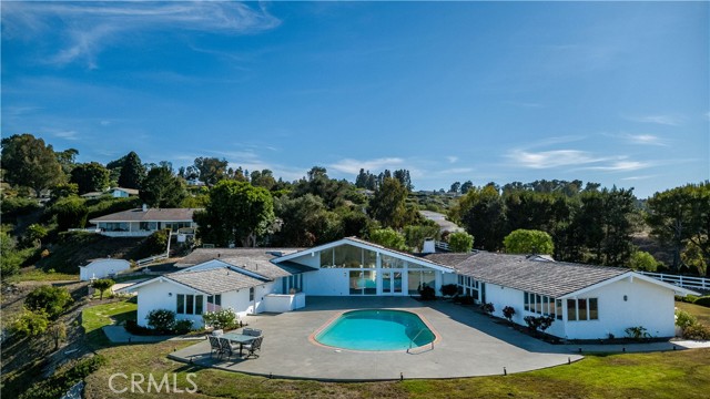 A Rare Cliff May-Designed Equestrian Estate with Unrivaled Views in Rolling Hills. Welcome to your private hilltop retreat, where classic California ranch architecture meets resort-style living. This spectacular 5-bedroom, 5.5-bath estate designed by iconic architect Cliff May is nestled behind the 24/7 guard-gated community of Rolling Hills. Perfectly positioned on one of the best streets in the city, this property offers sweeping, unobstructed views of the Queen’s Necklace, Downtown Los Angeles, and the glittering city lights below. Thoughtfully crafted to capture its breathtaking surroundings, nearly every room in the home frames a panoramic view. Floor-to-ceiling windows fill the formal living and dining rooms with natural light, while marble floors and vaulted ceilings add an air of quiet elegance. The gourmet kitchen opens to an inviting family room, ideal for casual gatherings and seamless indoor-outdoor living. Outside, a sparkling pool and built-in BBQ anchor the spacious entertaining patio—an ideal setting for sunset soirées or weekend relaxation. A detached guest apartment with kitchenette offers comfort and privacy for visitors or multigenerational living. For the equestrian enthusiast, the estate features a barn, corral, and wash area along with the potential to convert the barn to an ADU (buyer to verify with city). With approximately 2 flat acres, the property offers space for a pickleball court, vineyard, orchard, or expanded pasture—bringing endless possibilities to life. Originally selected by the former president of Southern California Edison as the first home site on Buggy Whip Drive, this exceptional lot was chosen for its dramatic 180-degree views and expansive flat pad. The result is a timeless, peaceful setting that feels worlds away yet is just minutes from South Bay beaches, shopping, and dining. Rolling Hills offers a lifestyle unlike any other in Los Angeles: a secluded, equestrian-friendly community with private riding and hiking trails, community tennis courts, and three secured entrances. This one-of-a-kind property is more than a home—it’s a legacy estate ready for its next chapter.