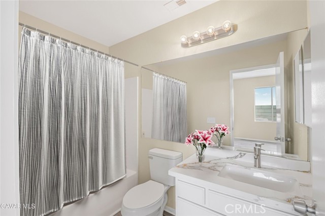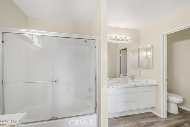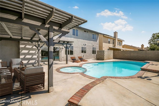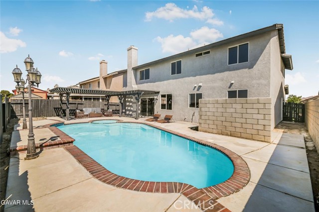 This stunning and spacious home boasts fresh full interior and exterior paint, giving it a crisp, move-in ready feel. The beautifully updated kitchen features freshly painted cabinets, brand-new countertops, stainless steel appliances, a new sink, faucet, and garbage disposal, making it a chef's delight. The entire downstairs and all upstairs bathrooms showcase brand-new plank flooring, while the stairs and bedrooms are complete with new carpet for comfort. All bathrooms, including the downstairs and upstairs hall baths, have been upgraded with new vanity tops, painted cabinets, new lighting, fans, faucets, and toilets, along with fiberglass tub/shower combos. The luxurious upstairs Master Suite offers new vanity tops, painted cabinets, dual sinks plus a makeup desk, a fiberglass tub/shower combo with glass sliding doors, new faucets, lights, toilet, and a walk-in closet. One additional upstairs bedroom is exceptionally large, perfect for multiple uses, and a second bedroom downstairs has its own ensuite bath for added convenience. The home also features two spacious living areas, a formal dining area, wide stairway and hallway upstairs, central heat and air, and a convenient indoor laundry room. Outside, enjoy new grass in the front yard, while the backyard is mostly concrete for low maintenance, paired with a sparkling pool and spa, a covered patio area, and a 3-car garage. Situated in an excellent location, this rare offering is perfect for large households—come see it today before it's gone!
