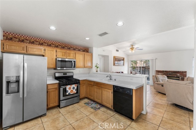 Welcome to this charming 3-bedroom, 2-bath single-family home offering 1,110 sq. ft. of comfortable living space on a spacious 6,969 sq. ft. lot. Nestled in a desirable cul-de-sac, this property combines convenience with privacy in a beautiful neighborhood setting. Once inside you'll discover an inviting open floor plan with a cozy fireplace in the living area, accented by tile flooring, recessed lighting, ceiling fans, and fresh white paint that create a bright and airy atmosphere. The home features a designated dining area that flows seamlessly into the kitchen, which is equipped with stainless steel appliances, tile counters, and ample cabinetry, perfect for both everyday living and entertaining. The well-sized bedrooms offer plenty of comfort and flexibility. Outside, the backyard provides endless possibilities with a wood-frame patio gazebo and space to redesign your dream patio or garden retreat. With its prime location in a quiet cul-de-sac, thoughtful interior upgrades, and great outdoor potential, this home is ready to welcome its new owners.