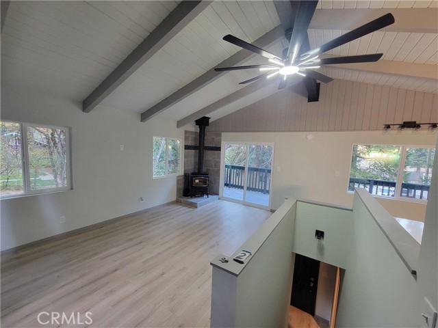 Beautifully Updated Home in Scenic Running Springs Welcome to this charming, turnkey home nestled in the heart of Running Springs. This beautifully renovated property features a cozy wood-burning stove, perfect for crisp mountain evenings. The kitchen has been completely remodeled with new cabinets and modern appliances, while the entire home boasts fresh interior and exterior paint, new windows, and upgraded flooring throughout. The bathrooms have also been fully renovated with stylish finishes. For year-round comfort, the home is equipped with a split unit for both heating and air conditioning, ensuring you're comfortable no matter the season. You'll also enjoy off-street parking and a spacious backyard, ideal for entertaining or relaxing. Located in a quiet neighborhood, this home is within walking distance to a park, post office, and bank. With so much to offer, it's ready for you to move in and enjoy mountain living at its finest! Whether you're looking for a weekend retreat or a full-time residence, this updated home provides the perfect blend of modern amenities and rustic charm. The serene mountain setting offers both privacy and convenience—truly the best of both worlds.