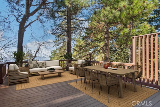 * * $10,000 seller credit offered toward buyer’s rate buy-down or closing costs. Excellent opportunity to reduce upfront expenses or lower monthly payments. * * Charming Mountain Retreat in Running Springs! Nestled among the trees, this beautiful mountain home offers stunning wooded views and a spacious deck perfect for outdoor relaxation. Freshly updated with new interior paint and carpet, this home is move-in ready! Inside, you'll find wood flooring throughout the main living areas, a cozy brick fireplace with a wood mantle, and a vaulted ceiling in the living room. A slider door opens to the expansive deck, seamlessly blending indoor and outdoor living. The dining area off the kitchen also features a second slider to the deck, offering breathtaking views while you dine. A convenient mudroom/utility room connects the attached 2-car garage to the kitchen and includes a powder room. Upstairs, you’ll find three spacious bedrooms and two full bathrooms. The primary suite features wall-to-wall closets, an ensuite bathroom, and a private balcony with serene treetop views. With a long driveway providing ample parking and a peaceful wooded setting, this home is perfect for full-time living or a weekend getaway. Located just minutes from local shops, dining, and outdoor recreation, this Running Springs gem offers the perfect blend of comfort and nature. Don’t miss this incredible opportunity—schedule your showing today!