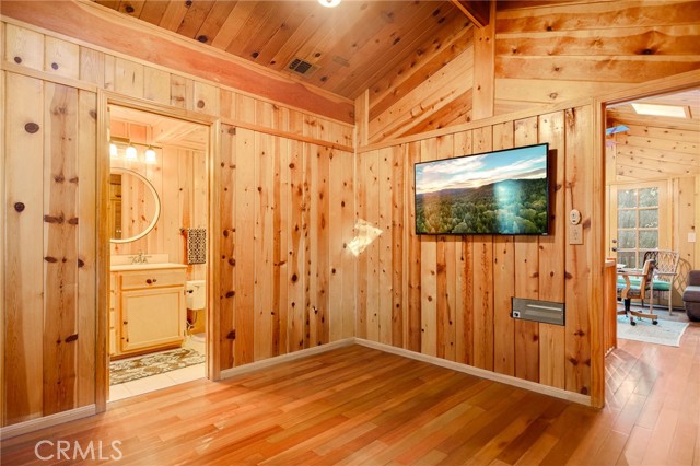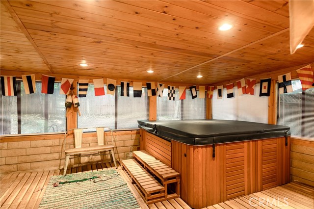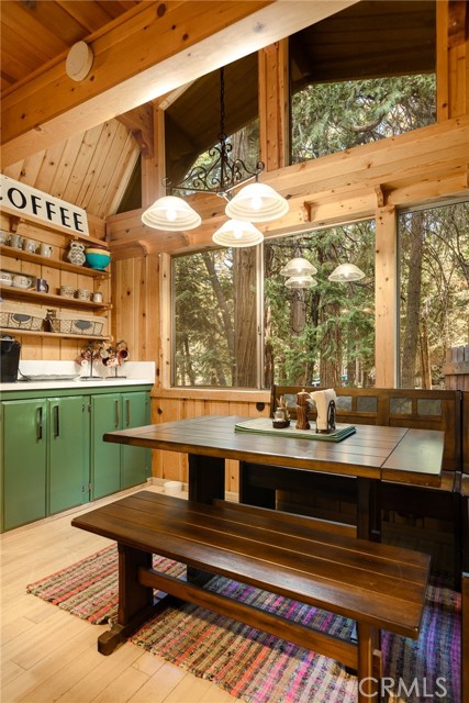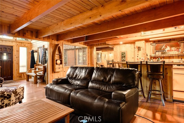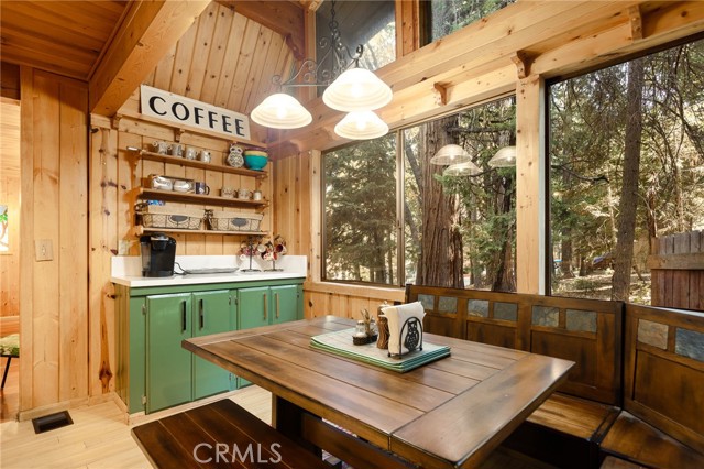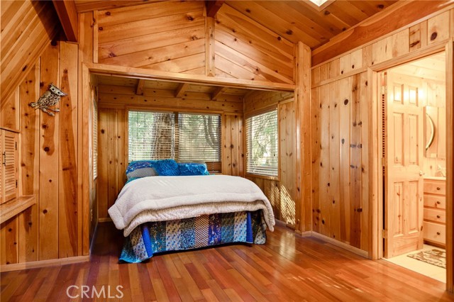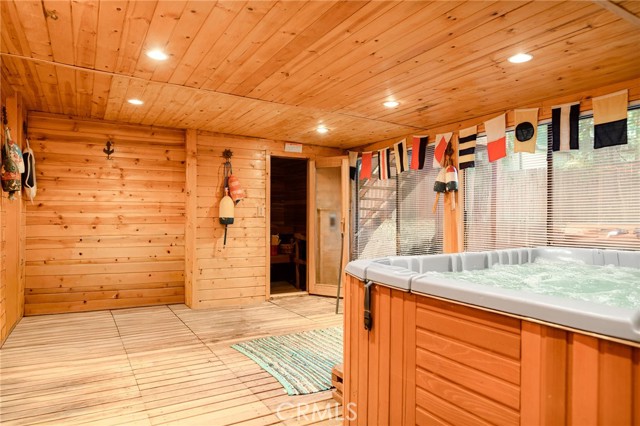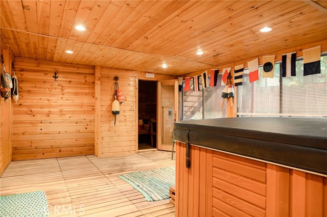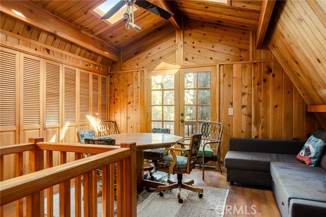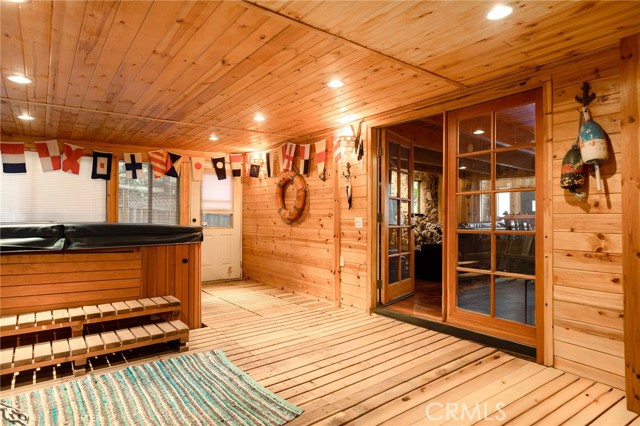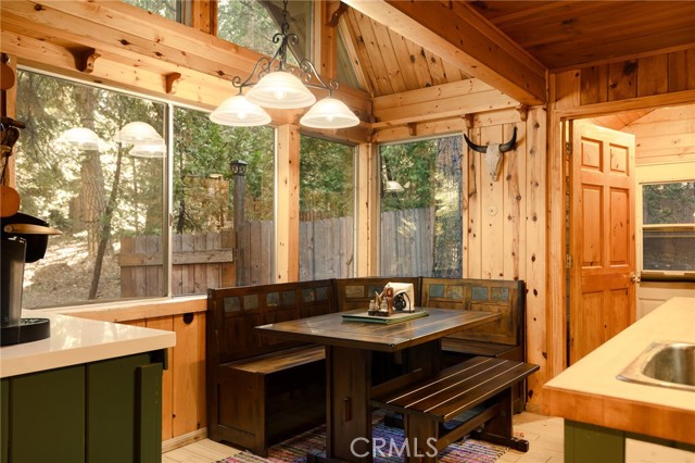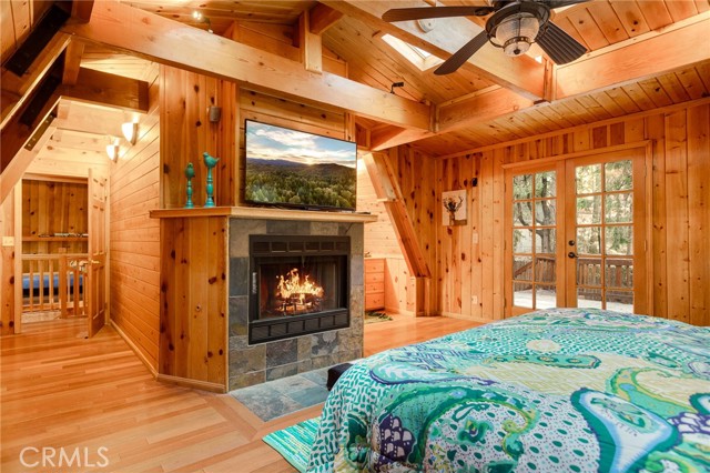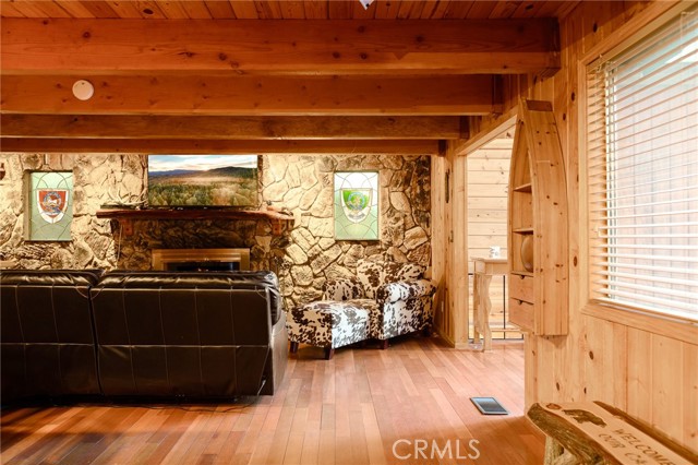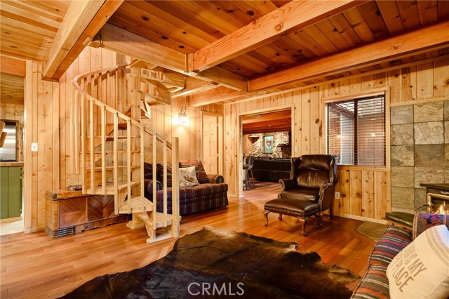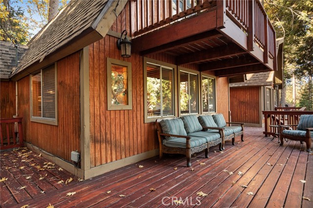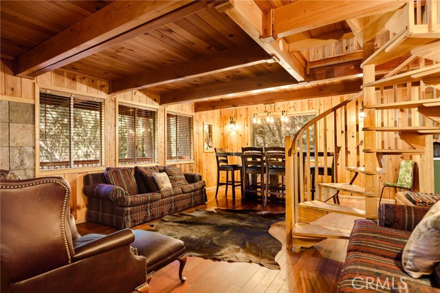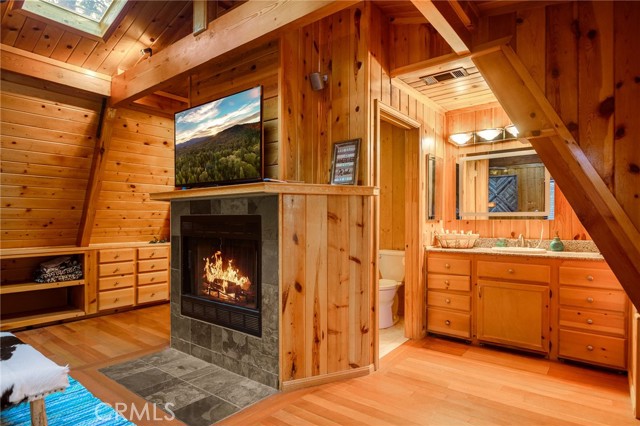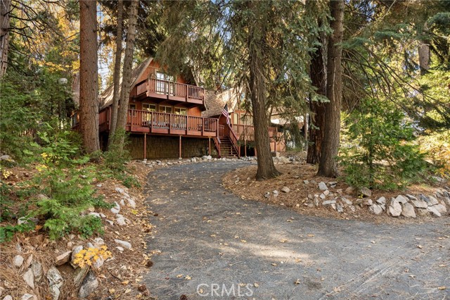 Welcome to this stunning mountain chalet nestled in one of the most popular neighborhoods in the San Bernardino Mountains. This home offers the perfect blend of mountain charm and modern comfort. Step through the front door into a grand entryway that welcomes you with warmth and style. The cozy living room features rich wood accents and large wet bar, perfect for entertaining. A separate sitting room or home office. And adorable spiral staircase leads to the upper level where you'll find 3 spacious bedrooms. The primary suite includes a warm, inviting fireplace, private deck and full bath-a true mountain retreat. Home includes 3 bathrooms, 2 ensuites upstairs and one downstairs. The large kitchen with a country sink, stylish green cabinetry and plenty of space for gatherings. A separate laundry room adds convenience. For ultimate relaxation there is a jacuzzi and sauna room. Outside, enjoy the fenced backyard and attached single car garage. Easy access to ski resorts hiking trails and vibrant hub of the San Bernardino Mountains. This amazing chalet captures the essence of mountain living-warm, inviting and truly one of a kind.