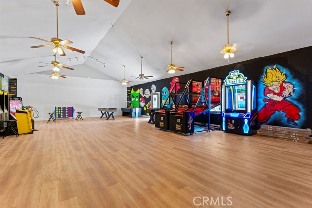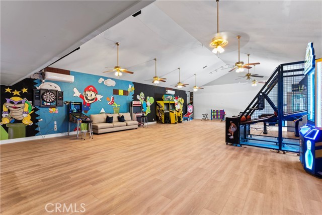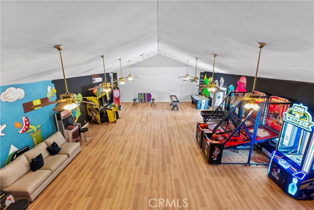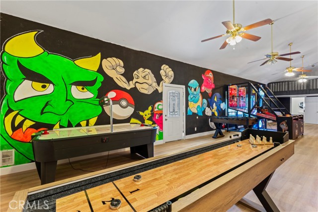 Spectacular Panoramic Retreat in Running Springs. Discover an incredible opportunity to own a one-of-a-kind mountain retreat with breathtaking views! Perfectly situated on 1.27 private acres just off Highway 330 and minutes from downtown Running Springs, this fully remodeled property offers the ultimate blend of comfort, versatility, and unforgettable scenery. Inside the expansive main residence nearly every detail has been thoughtfully updated for modern living. Enjoy the peace of mind that comes with retrofit windows throughout, two central heating and air conditioning systems, and 75-gallon water heaters. Gorgeous laminate flooring flows through spacious living areas, all filled with natural light and designed to maximize the stunning vistas outside. The kitchen comes fully equipped, and the home will be sold turnkey with all furniture, appliances, and even arcade games included — simply bring your bags and start enjoying mountain life! The property features a newly fenced and gated yard, rebuilt decks overlooking the valley, and a massive flat-surface parking lot with space for 20+ vehicles — ideal for large gatherings or events. A standout feature is the converted barn, now an entertainment haven and arcade, perfect for family fun, group retreats, or hosting unforgettable parties. The additional meeting space offers endless possibilities, whether you’re looking for a function facility, organizational retreat, or a lucrative rental property. Don’t miss your chance to own this truly unique property!