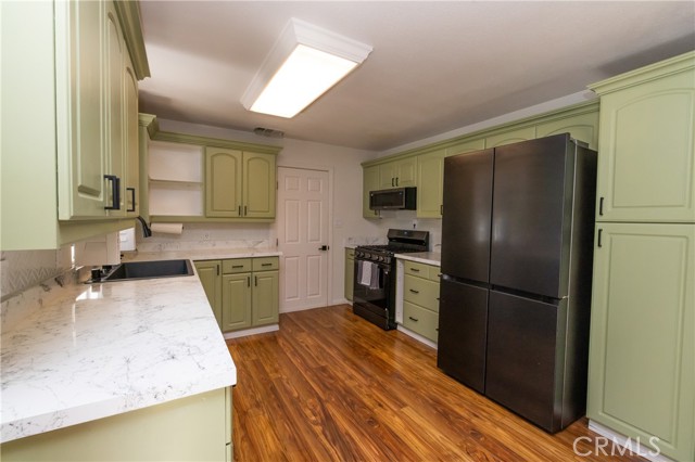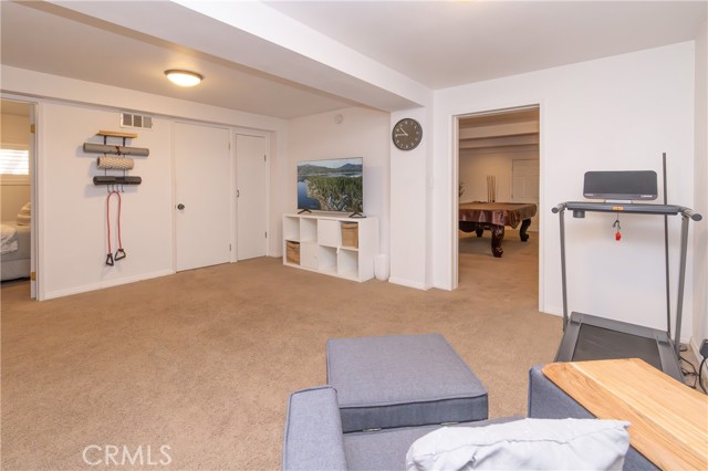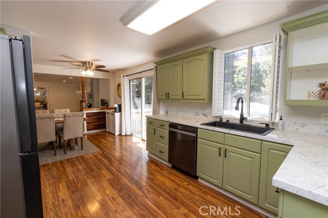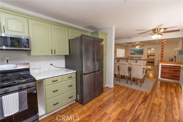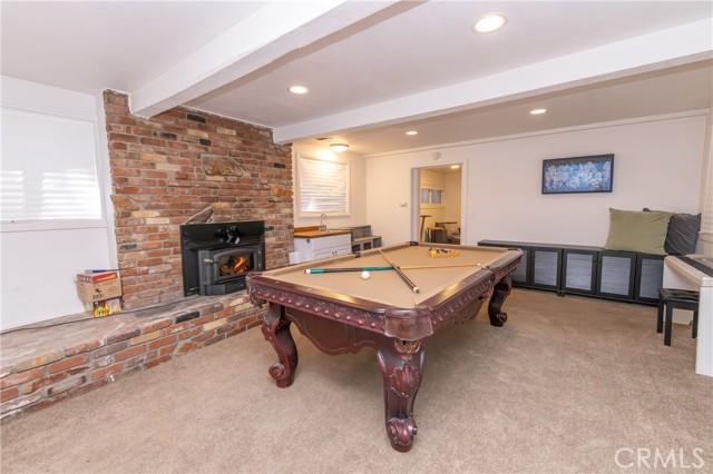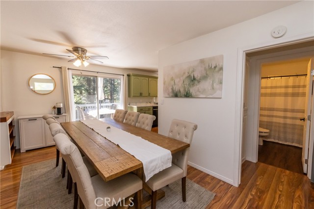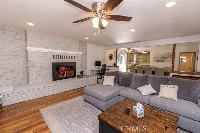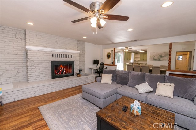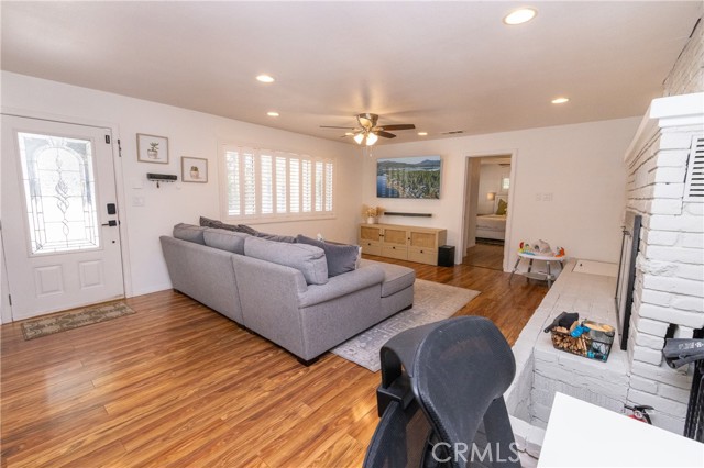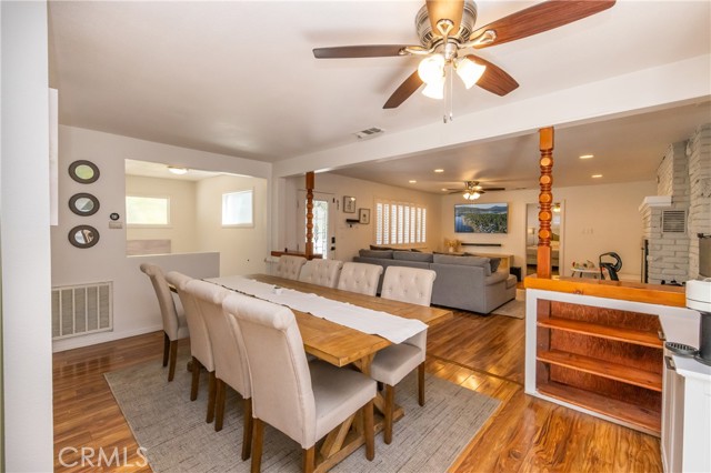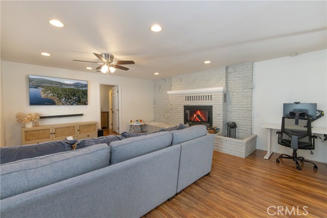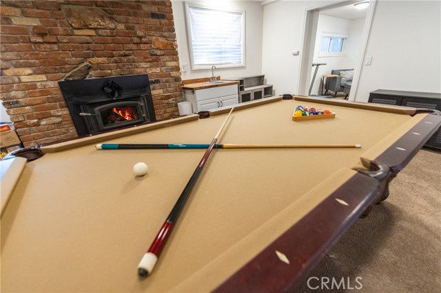 A prime piece of Running Springs real estate in San Bernardino County. This 3-bedroom, 3-bathroom single-family residence offers 2,218 square feet of updated living space on a 6,400 square foot lot. Great for families, outdoor lovers, or investors, it combines rustic charm with modern amenities for comfortable mountain living. Enter through the convenient mud room, a must for snowy days, into an open main floor featuring a renovated kitchen, stainless steel Samsung appliances, custom shaker cabinets, and a breakfast bar great for casual meals. The adjacent dining area flows seamlessly into the living room, highlighted by a wood-burning fireplace and large windows showcasing tree-lined views. The primary bedroom suite includes a walk-in closet and a separate bath with dual vanities, while a second bedroom and a full bath complete this level. Downstairs, the versatile lower area has been reimagined as a gym and entertainment space, boasting a dedicated workout zone with room for equipment, a game room for billiards or gaming, and a spacious family room with another fireplace for movie nights or gatherings. A third bedroom, additional bath, and laundry room add functionality, with potential to create a separate in-law suite. Recent upgrades elevate this home: newly installed central air conditioning ensures cool summers, an electric vehicle charger station in the 2-car garage supports green living, energy-efficient LED lighting, fresh interior paint, and updated bathrooms. Outside, the fully fenced yard provides privacy, a deck for barbecues, ample parking for RVs, boats, or multiple vehicles, and easy access to a detached carport. Priced competitively, this turnkey mountain retreat is ready for new owners. Don't miss out on this updated property with a renovated kitchen, home gym, entertainment area, EV charging, A/C, and more. Contact for a showing today!