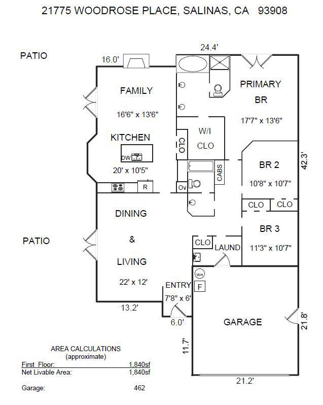 Great opportunity to own a single level Las Palmas II home located on a private lot off a cul-de-sac with views of the Salinas Valley. Set on an 11,000+ square feet lot, this 1863 square foot, light and bright move in ready home offers an open floor plan and high ceilings throughout. As you enter the home, you are greeted to a spacious room that would be traditionally used as a formal living and dining rooms, but is flexible enough to be used as you like. Next is a cozy family room with a fireplace that is open to a large, well laid out kitchen with a breakfast bar. There are French doors allowing easy access to the nicely landscaped yard and patio and offer views of the valley below. The primary suite is also spacious and offers a large walk in closet, and French doors to the yard out back. The primary bath has a walk in shower, a jetted tub and dual vanity sinks. There are two more bedrooms and a full bath, along with a laundry room down the hall. Don't miss this one!