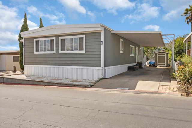 Welcome to this beautifully updated mobile home located in the desired Lamlighter mobile home community in North Salinas, just minutes from the freeway, shopping centers, and everyday conveniences. Inside, this spacious home features two bedrooms, two bathrooms, plus a versatile bonus room that can serve as a third bedroom, office, or hobby space. The large living area is perfect for relaxing or entertaining, while the updated kitchen shines with newer cabinets, granite countertops, a skylight, and plenty of storage. Additional highlights include a separate laundry room, double-pane windows, upgraded bathrooms, and flooring. Step outside to your private deck, ideal for hosting gatherings or enjoying your morning coffee. With its prime location and modern updates, this home is move-in ready and offers the perfect blend of convenience and community. The community features amenities such as a pool, tennis courts, a grass field, a recreation room, and a clubhouse.