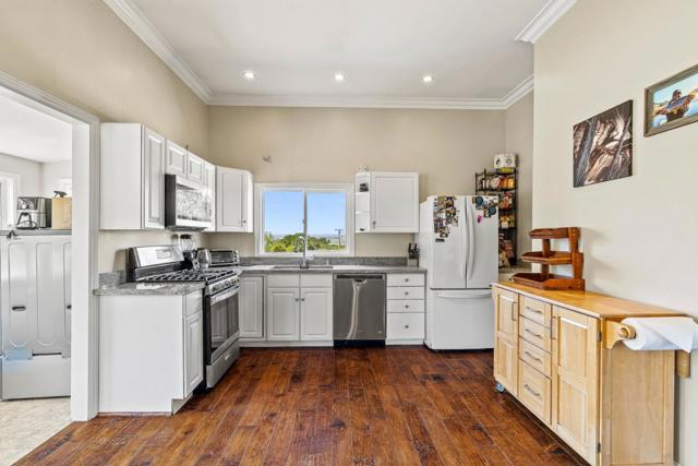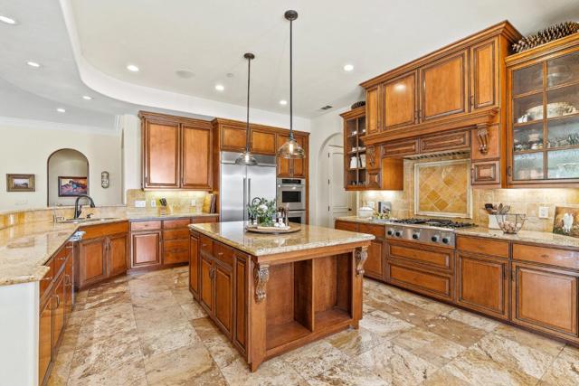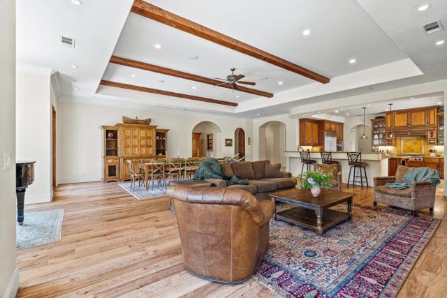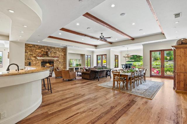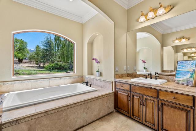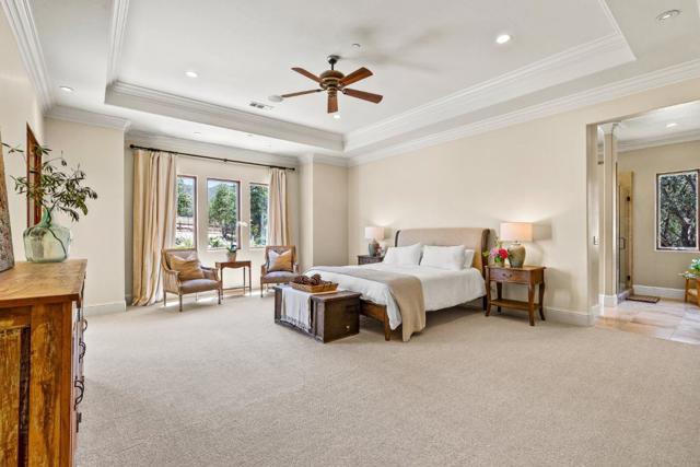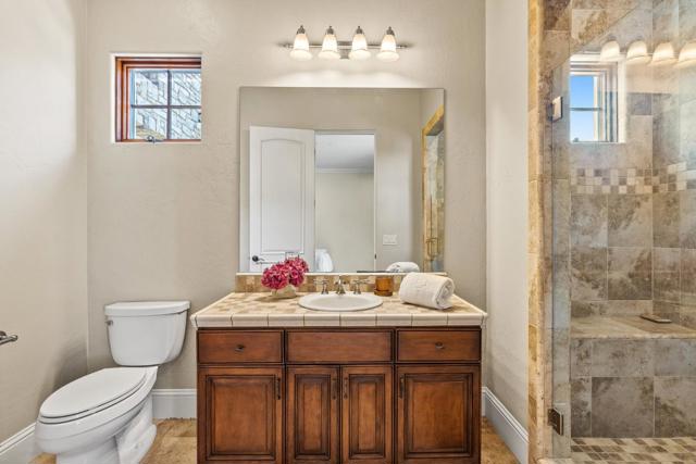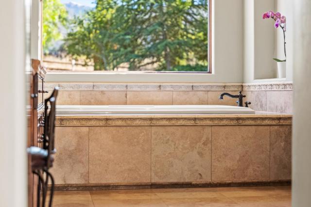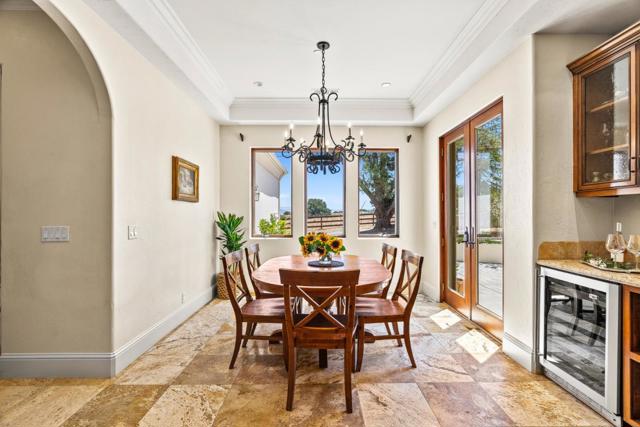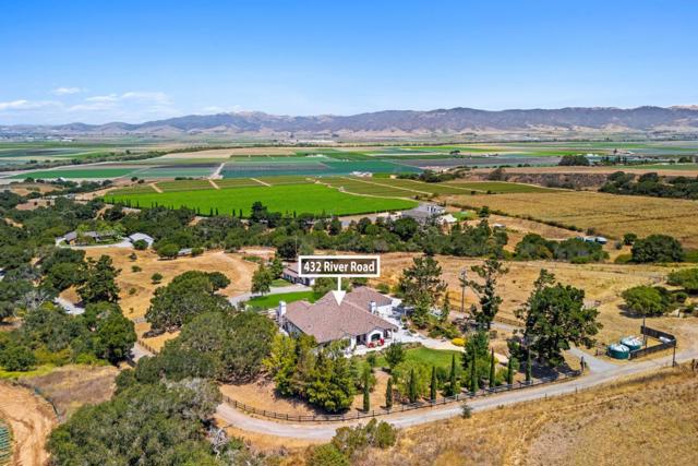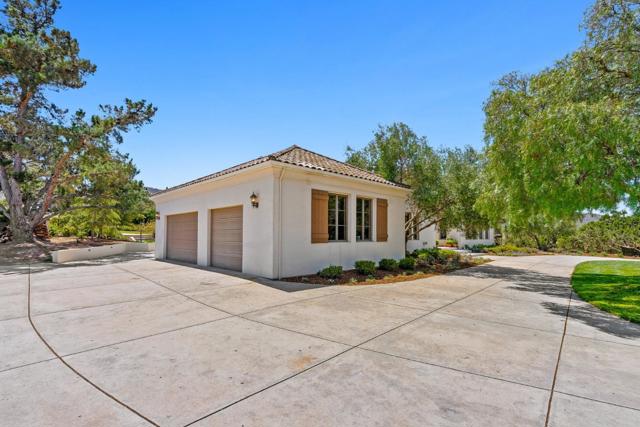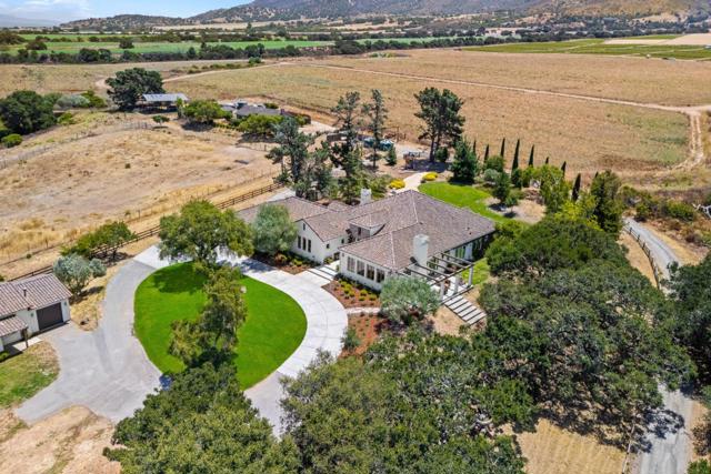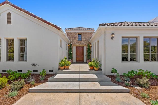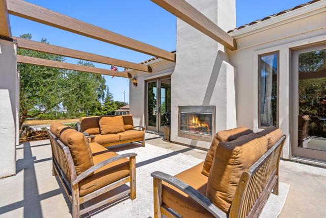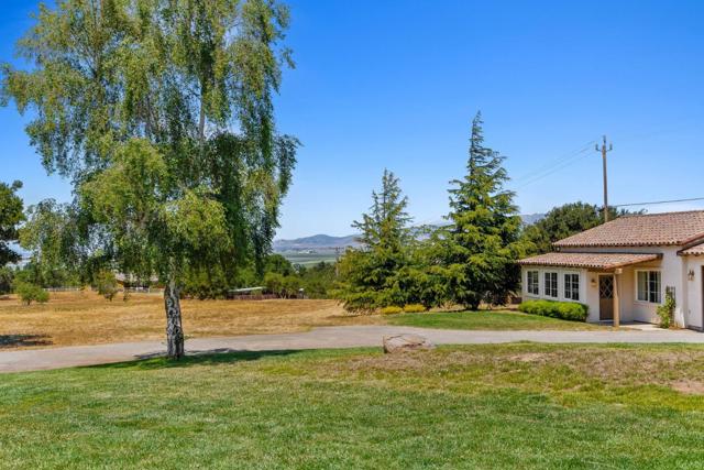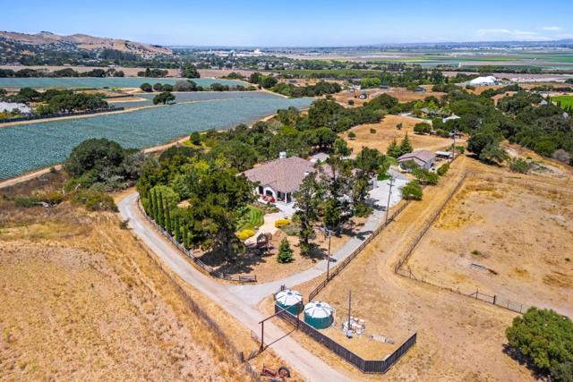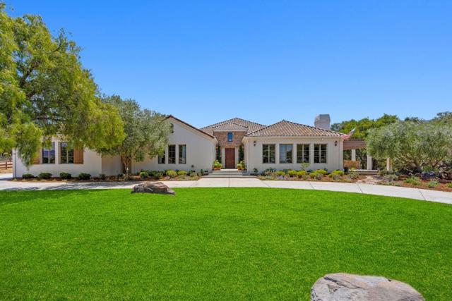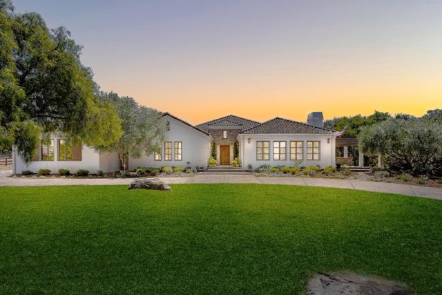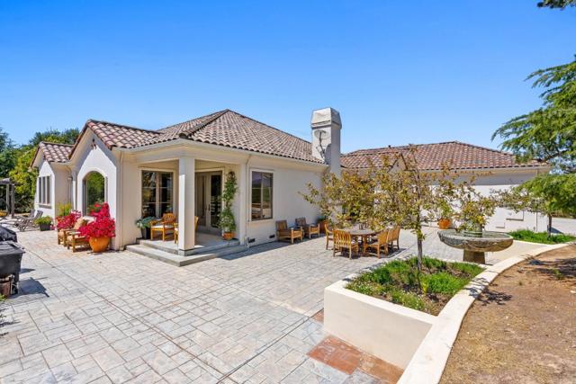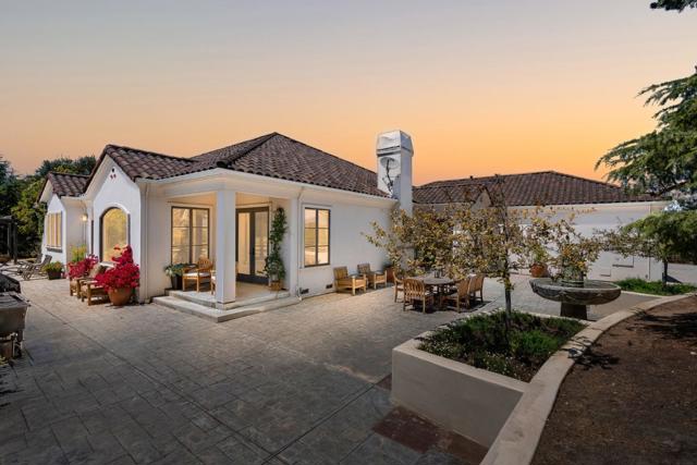This secluded Mediterranean estate offers views of the Salinas Valley below and more than 5,600 sf of elegant, open living space. You can spread out indoors or enjoy the four flat, usable acres outside. The open kitchen flows into the large living room and dining area, with French doors leading to patios on three sides of the home. Each bedroom includes its own ensuite bathroom, and the large office provides privacy and natural light, opening directly onto an outdoor patio. Entertain in the main living area by the stone fireplace, or head to the family room featuring a full wet bar. For those cool summer evenings, gather on the outdoor patio beside the fireplace, while the kids climb the sprawling oak tree below. Your in-laws will appreciate the independence of the separate one-bedroom guest house with a full kitchen, living room, laundry, and its own one-car garage. The flat four-acre parcel offers space to roam, relax, or even ride - complete with a two-stall horse barn, garden beds, chicken coop, and ample water. Whether you're dreaming of homesteading or just want some breathing room, you've got options. Modern elegance, privacy, open space, and sweeping views - this property has it all, just minutes from Monterey, Carmel, and the Salinas Valley.