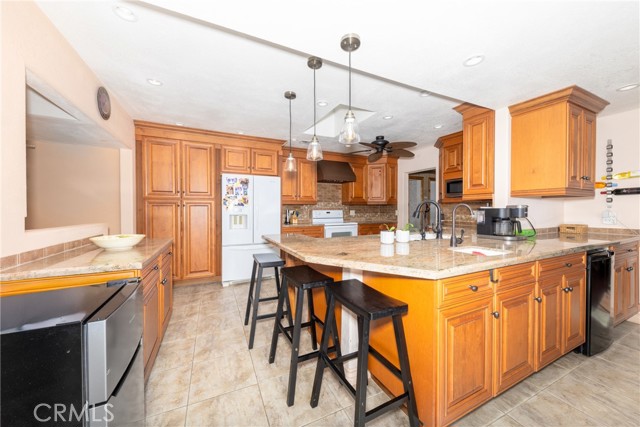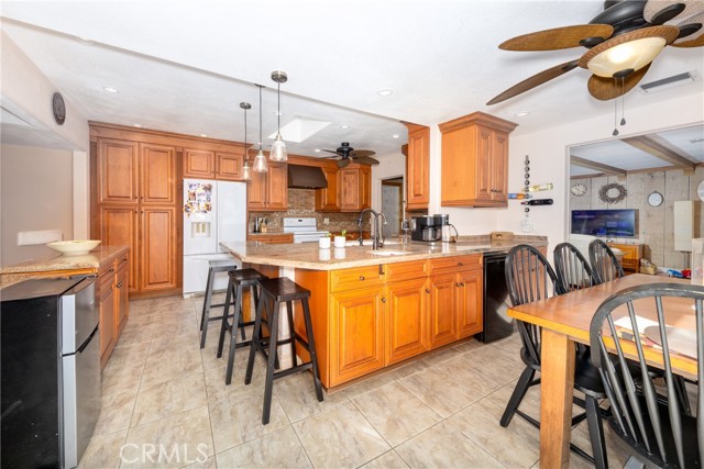 This inviting 5-bedroom, 2-bath home sits in a highly desirable area of North San Bernardino and greets you with outstanding curb appeal that sets the tone for the entire property. On the main level, you’ll find two well-sized bedrooms, a large family room perfect for movie nights and gatherings, and an oversized den that offers flexible living space ideal as a home office, playroom, or media area. The heart of the home is the expansive, upgraded kitchen, which features abundant granite countertops and abundant cabinetry, providing ample storage and workspace for the chef in the family; it overlooks a generous dining area that makes entertaining seamless and effortless. Upstairs, you’ll discover a private living area consisting of three bedrooms and a full bathroom, offering a quiet retreat for guests, teens, or multi-generational living, with a separate zone that can be used for living, study, or recreation. The outdoor space is meticulously maintained and perfectly sized for ease of care, leaving you more time to enjoy the serenity of the koi pond an tranquil feature that adds a peaceful focal point to mornings and evenings alike. This home blends practical design with modern upgrades, providing flexible spaces for work, play, and daily living, all within a convenient location with proximity to schools, parks, shopping, and commuting routes. Whether you’re hosting indoors or taking advantage of the easy-care backyard, this property is positioned to deliver comfort, versatility, and lasting appeal.