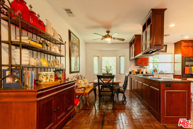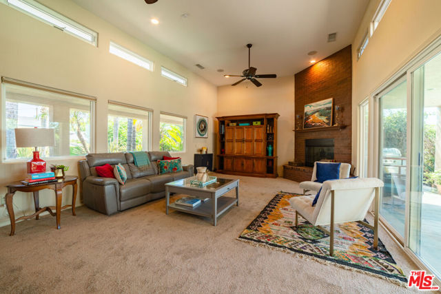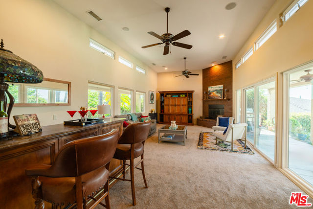 Experience the best of Southern California living in this beautifully designed 3-bedroom, 2.5-bath home that blends comfort, style, and effortless indoor-outdoor living. The formal living room welcomes you with soaring ceilings, clerestory windows that flood the space with natural light, and glass doors that open to the patio overlooking the pool. An elegant fireplace adds warmth and charm. The chef's kitchen is equipped with an oversized built-in refrigerator, a five-burner stovetop, and a built-in microwave and oven. Custom brick flooring and rich wood cabinetry create a timeless sense of warmth and sophistication. The open floor plan flows seamlessly into the family room with a fireplace and the dining area, perfect for gatherings. A conveniently located powder room serves guests with ease. The primary suite is a peaceful retreat featuring a private garden-view patio, a large dual-sink vanity, a soaking tub, and a spacious walk-in closet. Two additional bedrooms provide ample space and direct access to the garden, along with a shared guest bath. Step outside to your private backyard oasis with a sparkling pool, covered patio with ceiling fans, and breathtaking city-light view for entertaining or quiet evenings at home. The finished three-car garage with built-in cabinets offers exceptional storage and convenience. This home is the perfect blend of functionality, elegance, and California lifestyle, a true haven for everyday living and memorable gatherings.