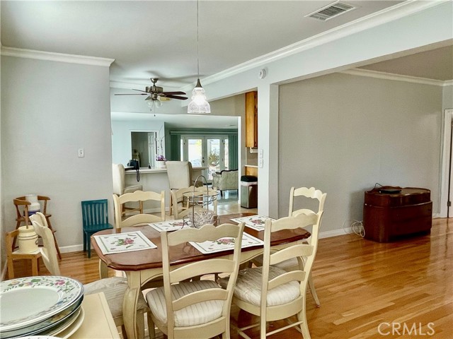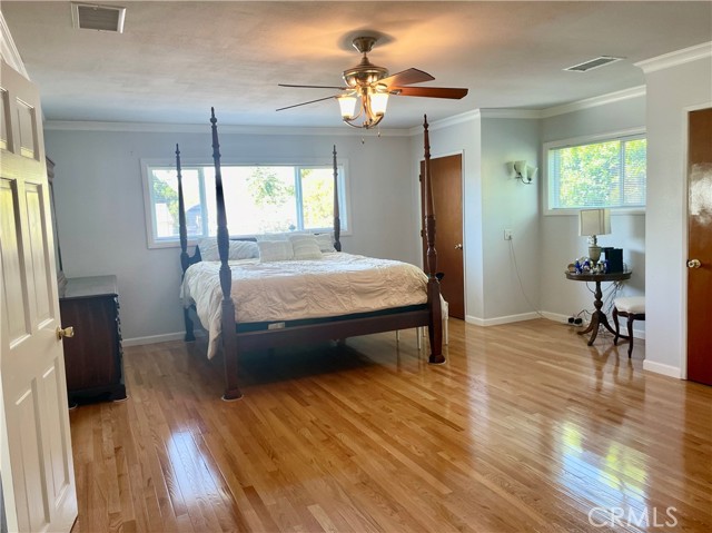 This is a LARGE, single story, 2399 square foot home! Five bedrooms, two of which are quite large, and three smaller bedrooms on a quiet street. This lot is unique in that it goes all the way back to the street behind, so you can enter from either the front or back of the property. Home is absolutely immaculate - it has been meticulously maintained. New HVAC in 2018, new roof in 2024, newer double paned windows throughout. Kitchen has nice cabinetry and Corian countertops with bar separating kitchen from spacious family room - this is a wonderful home for entertaining or large family. Lovely living room with GORGEOUS hardwood flooring, as well as tile in some rooms. It would be great for a contractor, landscaper, etc. It could also be a group/board & care home. Back yard has small covered patio, two newer sheds for storage, and plum, peach, orange trees, and grape vines. *Buyer to verify school boundaries.*