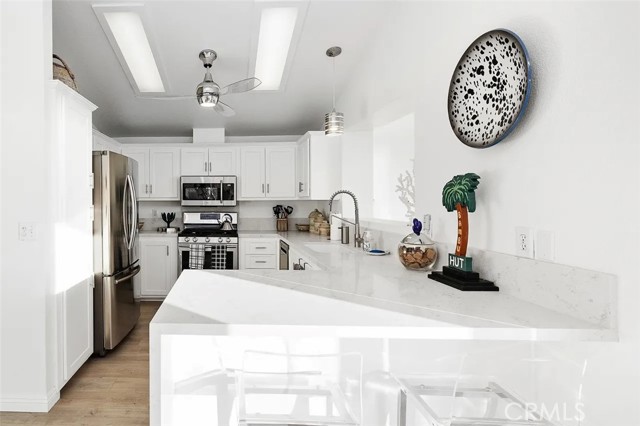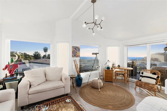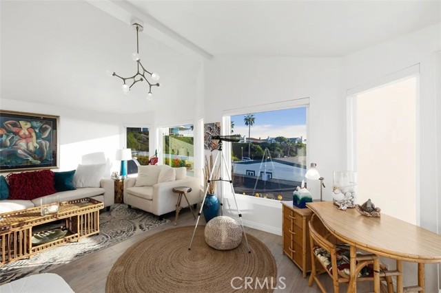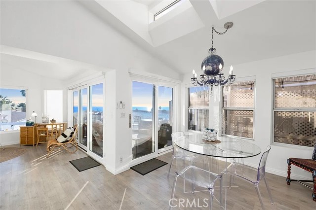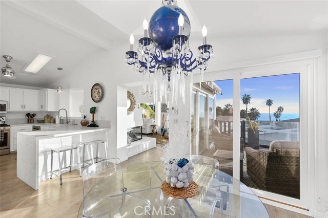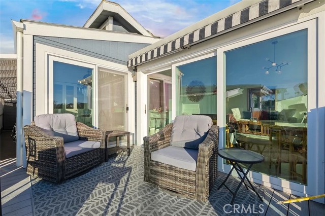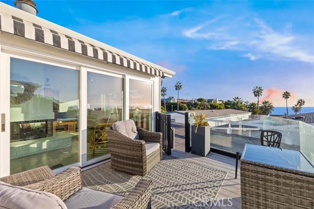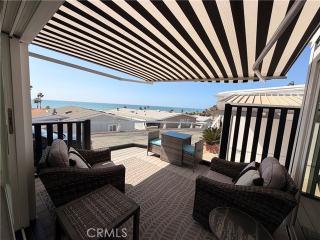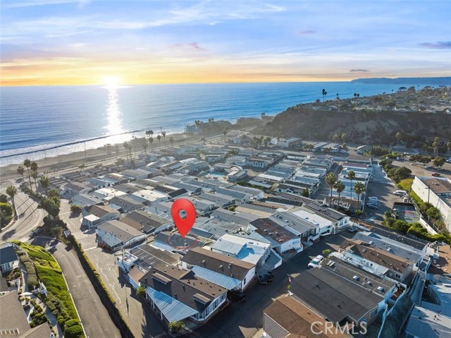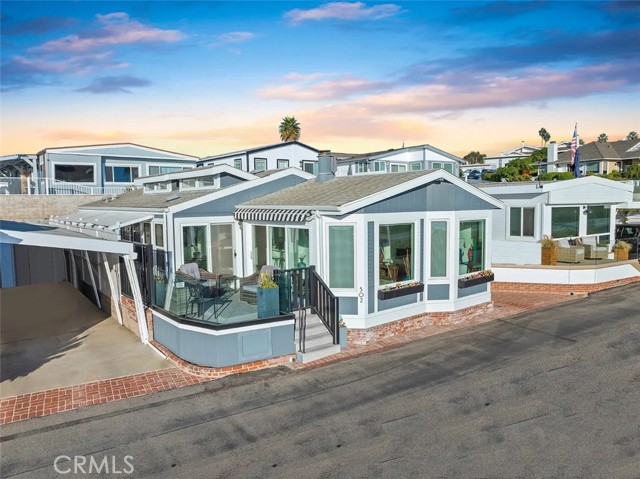 Bask in beachside living with panoramic ocean views of sailboats, sunsets and Catalina Island! Walk across the street, put your feet in the sand and host a party at your exclusive private beach area complete with a cozy fire pit, only available to residents of the desirable Capo Beach Cottages community. This 2 bed, 2 bath cottage features a multi-slide door to the patio deck with an automated awning to bring the dining and living rooms outside, creating an expansive living area. Paired with the Cathedral ceilings, this seamless indoor-outdoor flow has your space feeling open, airy, and perfect for coastal living. The kitchen showcases stainless steel appliances, farmhouse sink, self-closing cabinets, ample storage, and a breakfast bar. The primary suite features a spacious walk-in shower and additional closet space. The roomy second bedroom provides abundant accommodation for guests or a home office. There is a built-in shed and 2 additional storage sheds in the back for beach gear or potting. Community perks: Exclusive private beach area, clubhouse, year-round heated saltwater pool, shuffleboard, pickleball and library. 55+ Community.