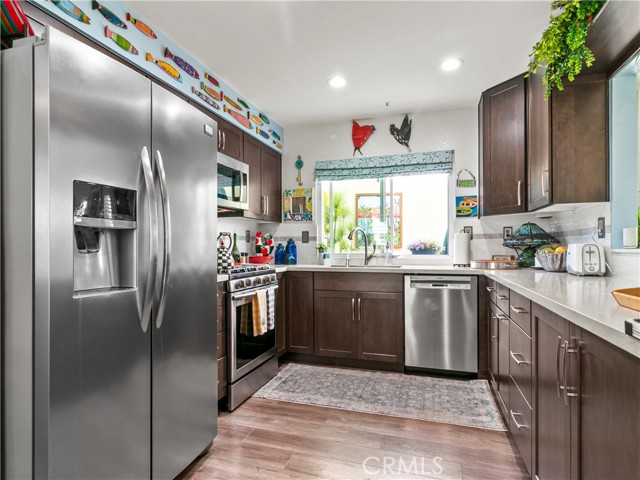 Wow, this one is a beauty! Private location, remodeled and ready for a beautiful family to enjoy all the amenities it offers! Starting with a well designed, efficient kitchen that the chef in the family will absolutely love! Quartz countertops, stainless steel appliances: Bosch Dishwasher, Frigidaire Refrigerator, Samsung oven and range, and GE microwave! Kitchen cabinets look new and lovely! Dual pane windows are impressive! Pride of ownership can be seen everywhere! Family room with a lovely tiled gas fireplace will definitely impress any buyers! A brightly lit powder room is off the family room. The master bedroom suite (downstairs!) has been totally remodeled! Master bath has quartz counters, frameless shower doors and a built-in towel warmer! Upstairs you'll find a full bathroom, both secondary bedrooms- one used as an office. Step out onto the deck to sit and relax or just enjoy the sunsets! Going back downstairs, step into the lovely and private backyard! The lushly planted back patio is a haven for relaxing and entertaining. The patio cover is solid, with overhead lighting and provides shade for the sitting area! There is so much more to cover in this home, like the vinyl gates and the Spanish pavers on the front patio. As you enter this lovely home you'll feel the warmth of the vinyl plank flooring and the natural light in the interior! The direct access 2-car garage offers plenty of space and includes a tankless water heater, cabinets and overhead storage. In summary, it's the perfect combination of an awesome home (no attached walls!) in one of the best neighborhoods in beautiful San Clemente. Last time on the market it was sold in 5 days and this time it will be no different, especially with all the added improvements! Don't wait to see this one!