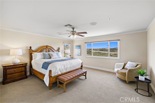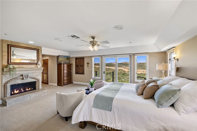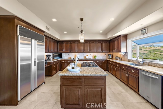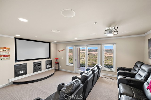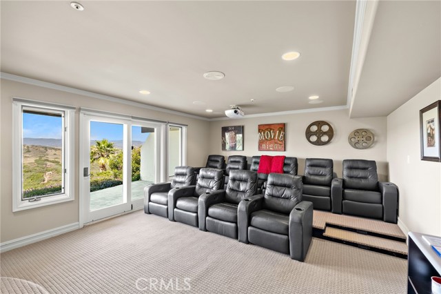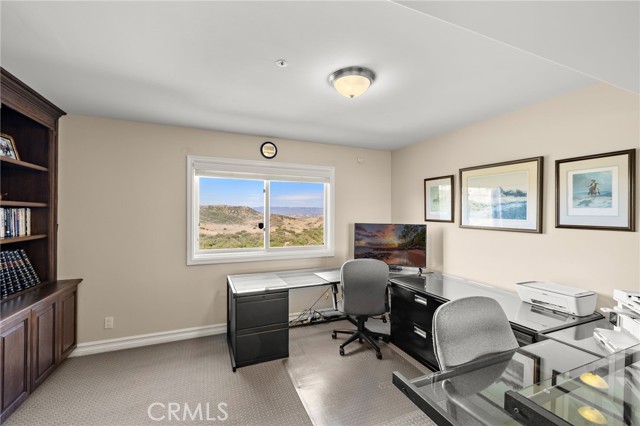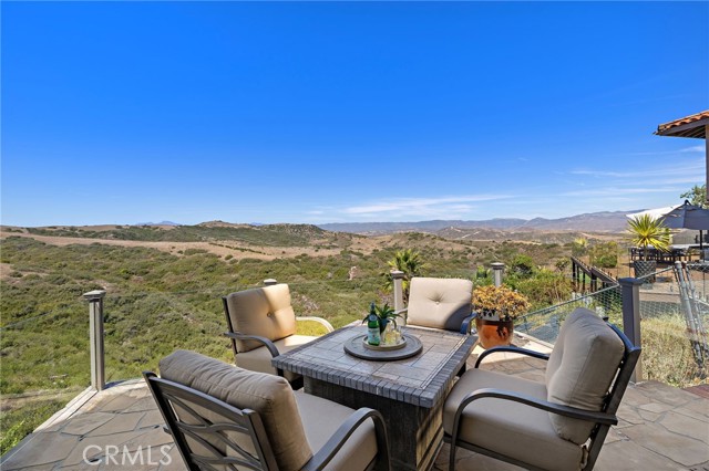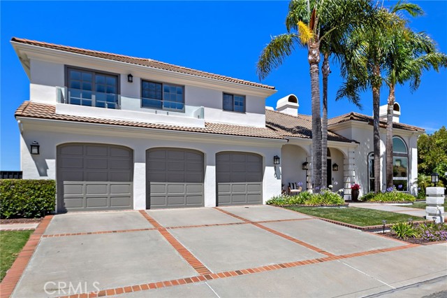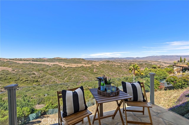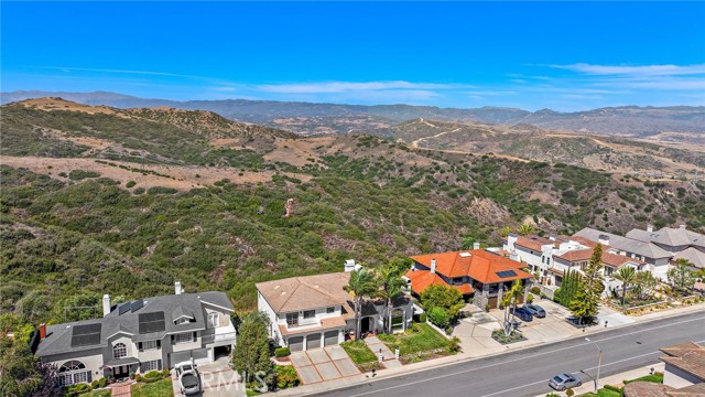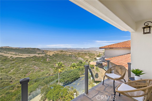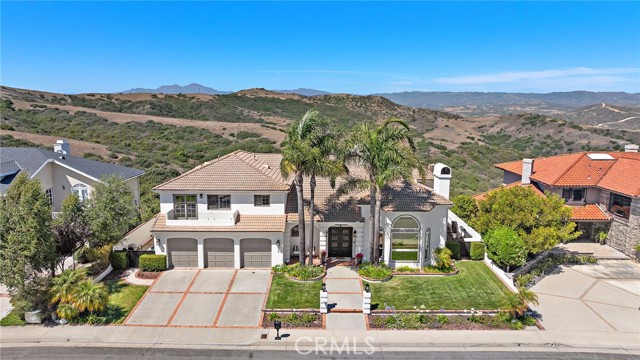 Elevated high in the hills of Southeast San Clemente on one of the area’s most desirable streets, this well-appointed home is a true showcase of pride of ownership. Driving to the summit alone inspires a sense of luxury living. Positioned along a wide (hardly-traveled) street among several large-scale, extremely custom estates, this home and surroundings are sure to impress. Upon arrival, curb appeal has been re-invented with a fresh coat of paint, refreshed landscaping, new entry doors & glass railings-an undeniable stand out. Inside large, steel, double doors, a formal entry draws you into grand two-story spaces. A well-appointed living room invites you in with arched features, coffered ceiling, major natural light, gorgeous wood floors, & detailed fireplace. Views of rolling hills across the formal dining room resemble a plein air painting. Parquet wood flooring details the floor. A spacious family room with wet bar, fireplace, & large view deck create the perfect place to unwind. Just off the family & dining rooms, beautiful wood floors lead to a massive entertainer’s kitchen with room for everyone to congregate. Offering ample cabinetry, stone flooring & counters, large centered island, stainless appliances, walk-in pantry, informal dining, all with surreal views of the etched hills abound (preserved land), this kitchen is just right. Up the grand staircase, wide hallways lead to three primary-like suites. The true primary is huge with major views. Coffered ceilings, fireplace, wired sound, exterior view deck, dual closets, spa-like bathroom with soaking tub, privacy toilet, dual sinks, beautiful wood cabinetry, & variable shower heads all make it exceptional. Two additional (giant) suites complete the upper level, one with view deck off the front (new glass railings). On the lower level (potential guest quarters), a fourth suite, a fifth bedroom (currently an office), & a large bonus room outfitted as home theatre with seating, projector, screen, & AV equipment. Slider doors access the rear patio & slope beyond. Major development potential: large decking, putting green, terraces, citrus grove planters, etc. Other values: zoned HVAC, fire sprinklers, massive 3-car (dialed-in) garage, peek ocean views, no HOA, on over an acre, homes of this caliber are truly rare to come by. Accessible to nearby trail systems including ridgeline & 2.5 mile beach trail, new restaurants, SC Pier, bikable to nearby world-class surfing at trestles, & amazing beaches.